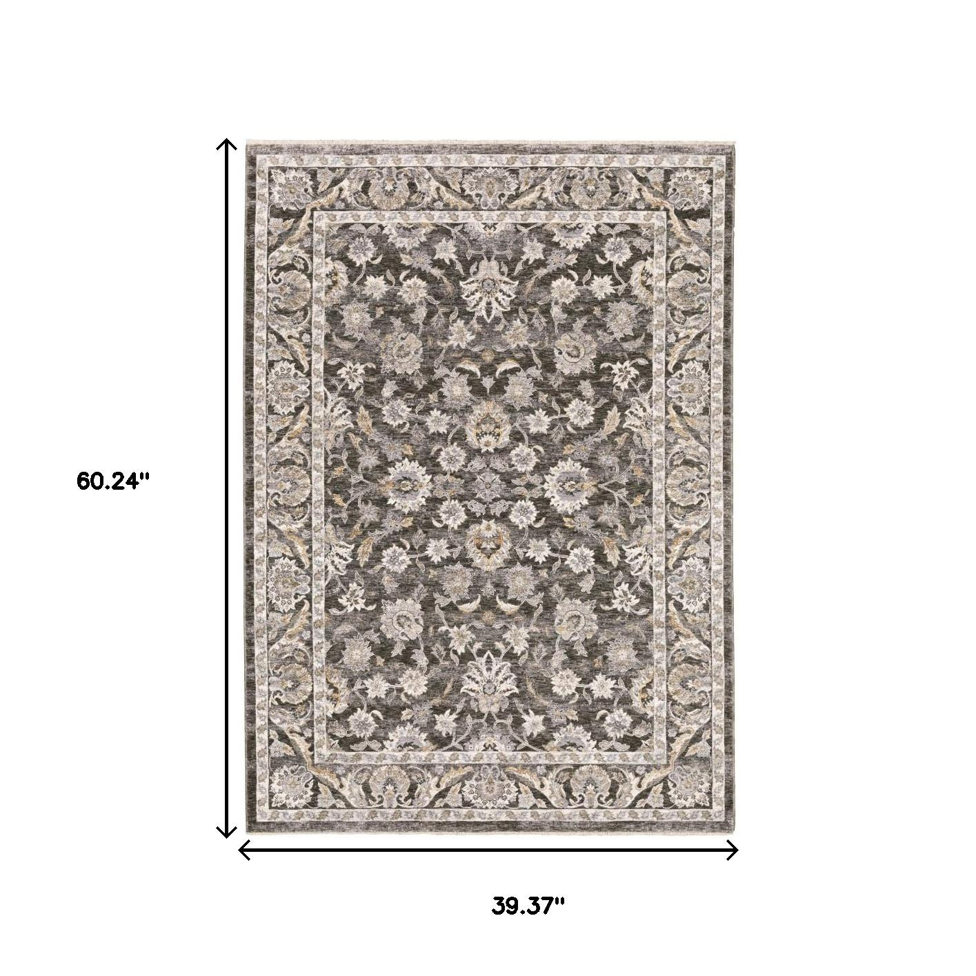 Add some artistry to your room with this 3' x 5' grey and ivory oriental power loom stain resistant area rug with fringe. This rectangle shaped rug features a oriental design in grey and ivory to give it visual interest. A classic shape marries with good looking design for your space Ideal for spaces with kids and pets, this rug is stain resistant to help repel stains and spilled liquids. Tassel ends bring a timeless and fashionable look to your interior. Area Rugs help to give warmth and sense of home to your space. 0.23" H x 39.37" W x 60.24" D