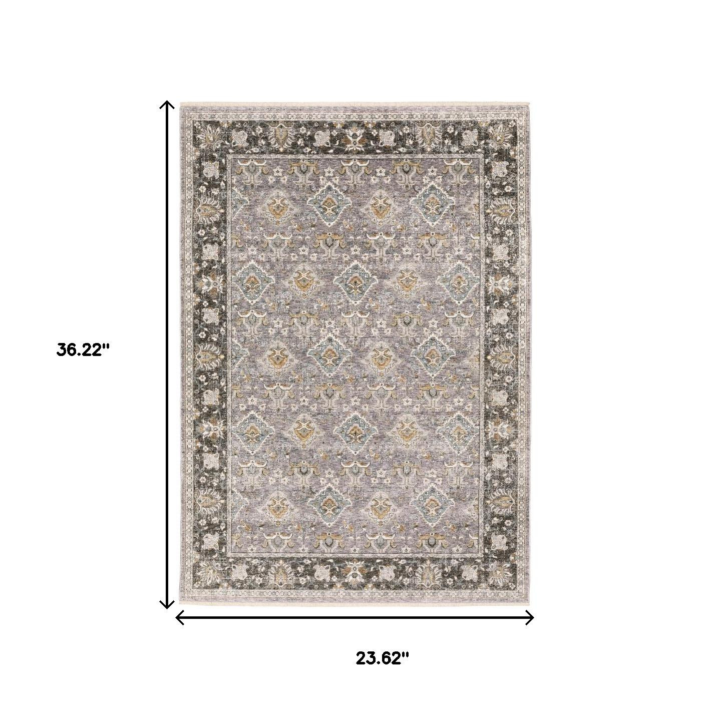 Set an inviting tone in your space with this 2' x 3' grey and blue oriental power loom stain resistant area rug with fringe. This rectangle shaped rug features a oriental design in grey and blue to give it visual interest. A classic shape marries with good looking design for your space Ideal for spaces with kids and pets, this rug is stain resistant to help repel stains and spilled liquids. Tassel ends bring a timeless and fashionable look to your interior. Place this area rug against a hardwood or tile floor and it will enliven your living space with style and sophistication. 0.23" H x 23.62" W x 36.22" D