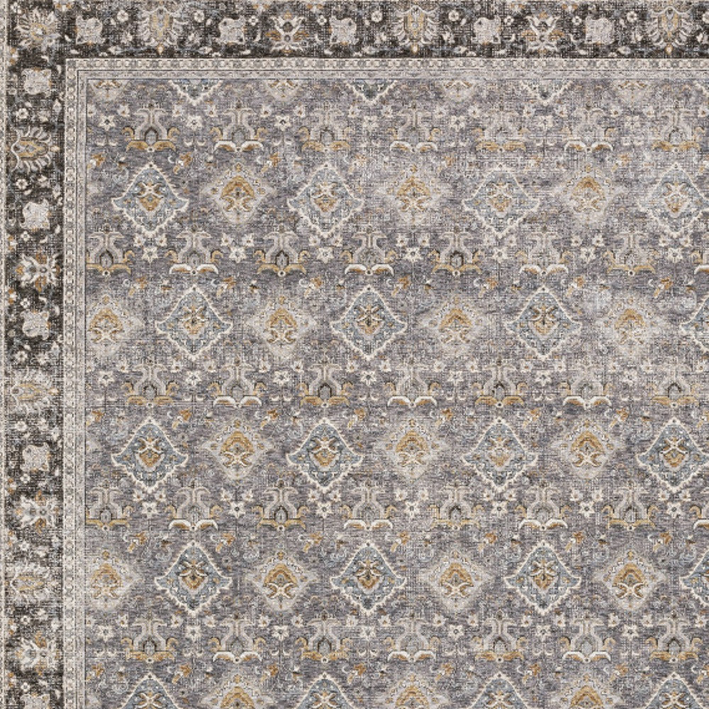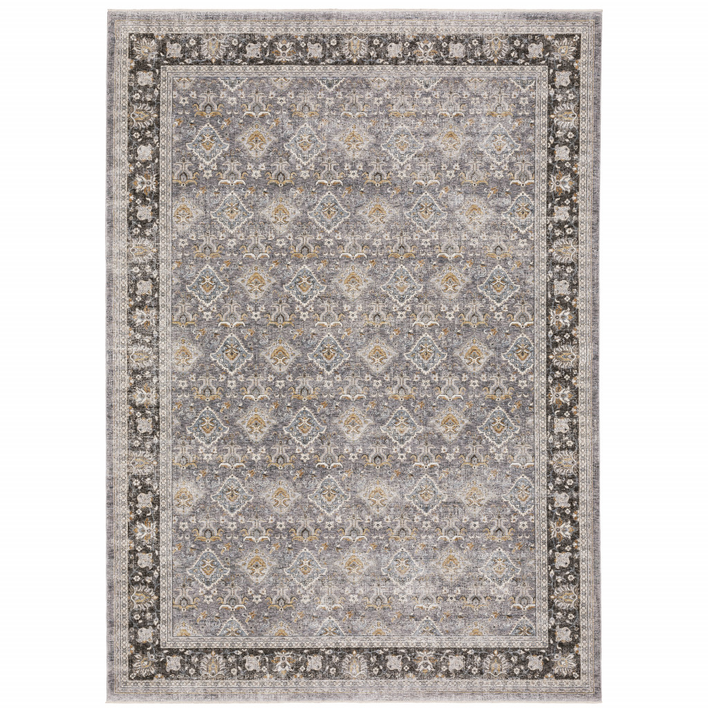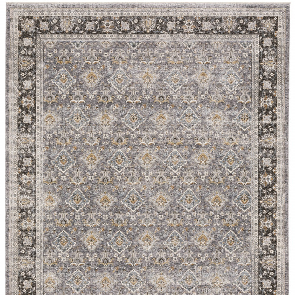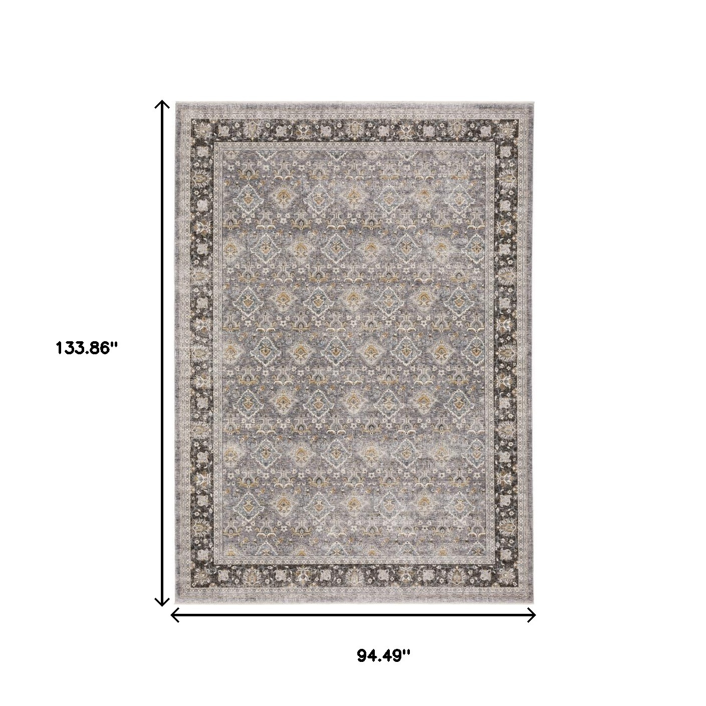 Add some artistry to your room with this 8-foot x 11-foot gray and blue oriental distressed area rug with fringe. Ideal for spaces with kids and pets, this rug is stain resistant to help repel dirt and spilled liquids. Built to last, this rug crafted from polyester fibers is known for its durability and long lasting appeal. Rugs are a great way to showcase your style, hide imperfections, warm your home and reduce noise. Tassel ends bring a timeless and fashionable look to your interior. 94.49-inch h x 133.86-inch w x 0.23-inch d.