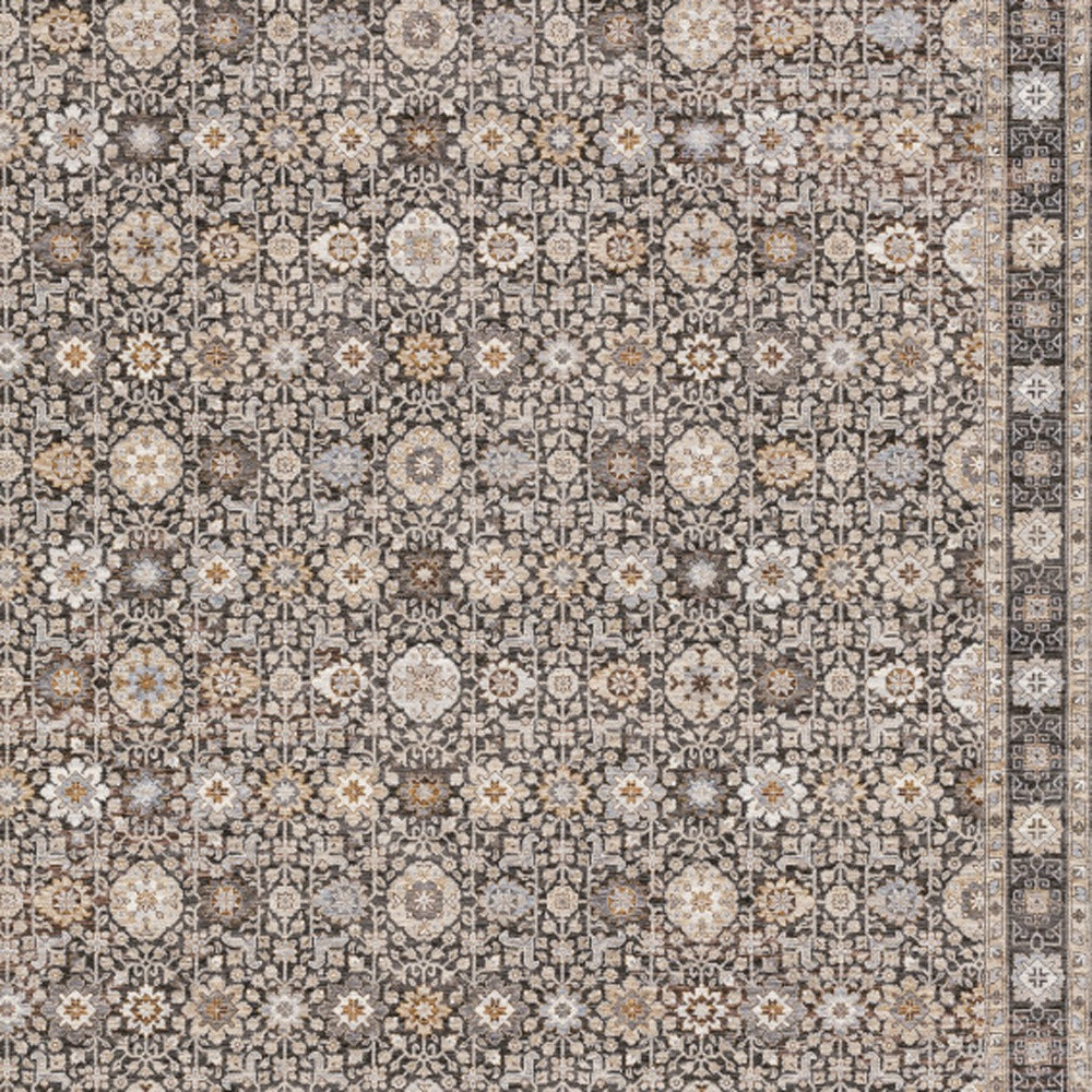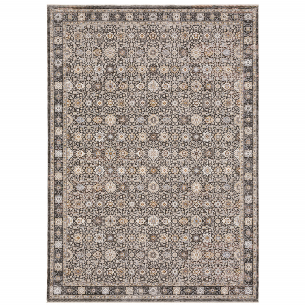 Add some artistry to your room with this 8-foot x 11-foot charcoal ivory and beige floral power loom area rug with fringe. This rectangle shaped rug features a floral design in charcoal ivory and beige to give it visual interest. A classic shape marries with good looking design for your space ideal for spaces with kids and pets, this rug is stain resistant to help repel stains and spilled liquids. Tassel ends bring a timeless and fashionable look to your interior. 94.49-inch H x 133.86-inch W x 0.23-inch D