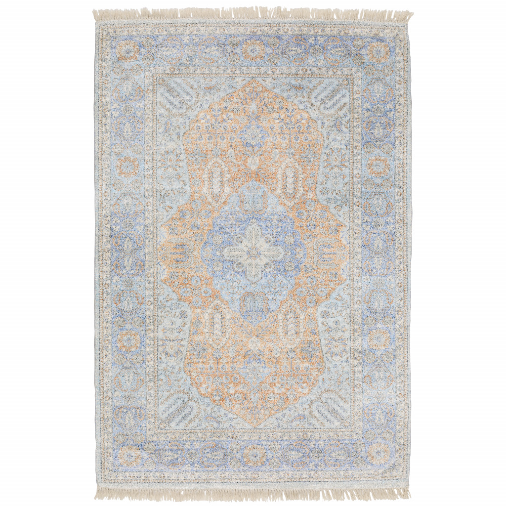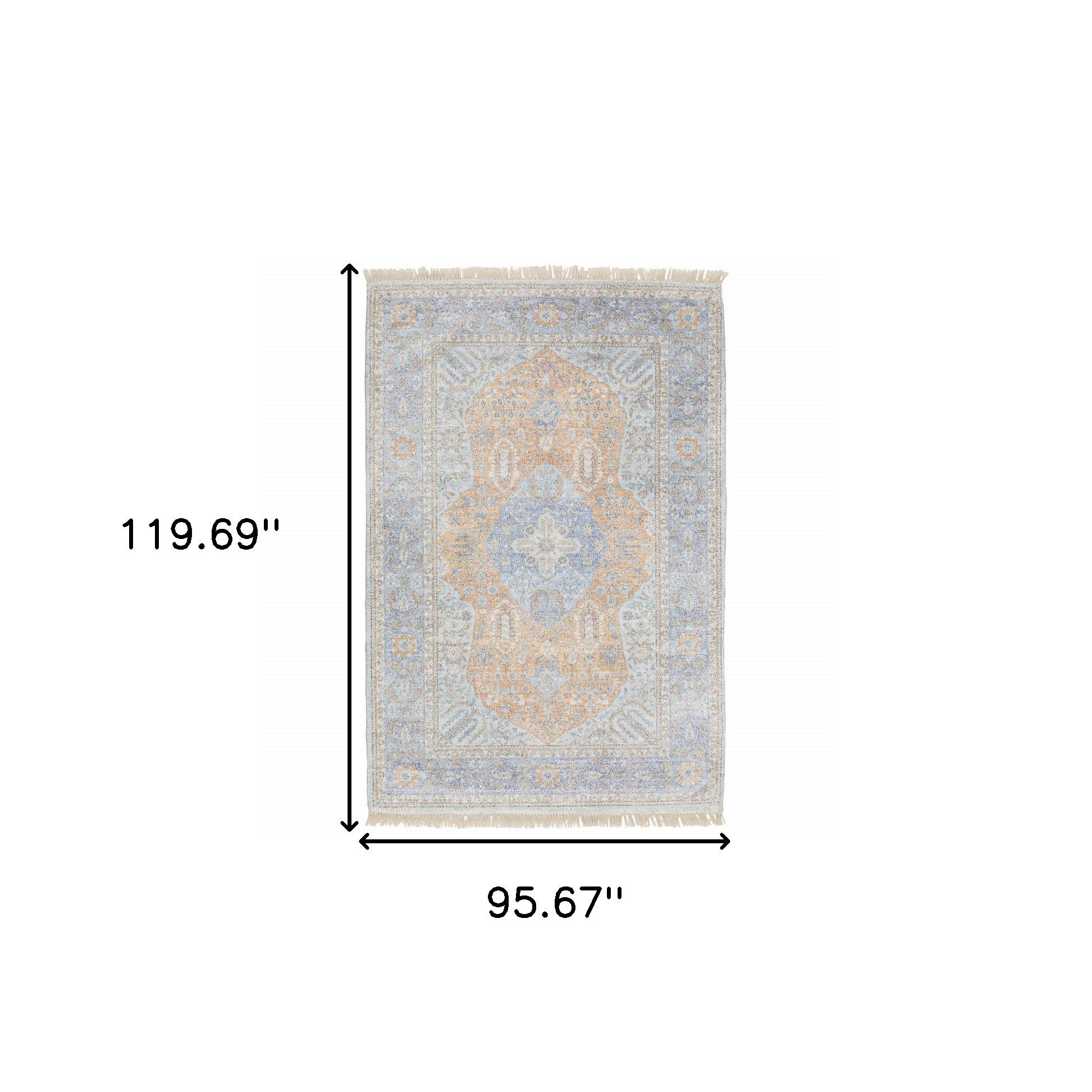 This 8' x 10' blue and red oriental hand loomed stain resistant area rug with fringe, is a great way to add warmth to a room. This rectangle shaped rug features a oriental design in blue and red to give it visual interest. A classic shape marries with good looking design for your space Ideal for spaces with kids and pets, this rug is stain resistant to help repel stains and spilled liquids. Tassel ends bring a timeless and fashionable look to your interior. Crafted by skilled artisans, this hand loomed rug is genuine and unique. No two will be exactly alike. Area Rugs help to give warmth and sense of home to your space. 0.23" H x 95.67" W x 119.69" D