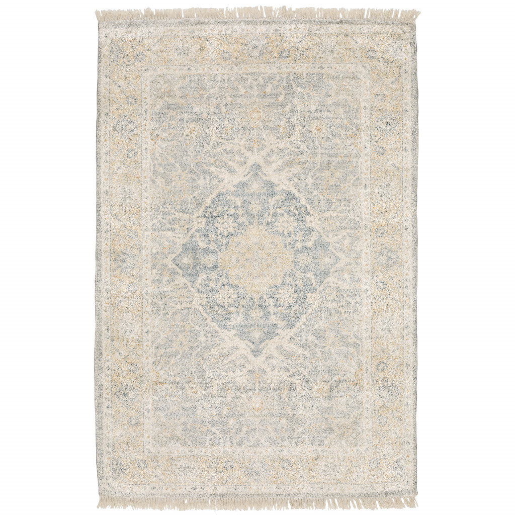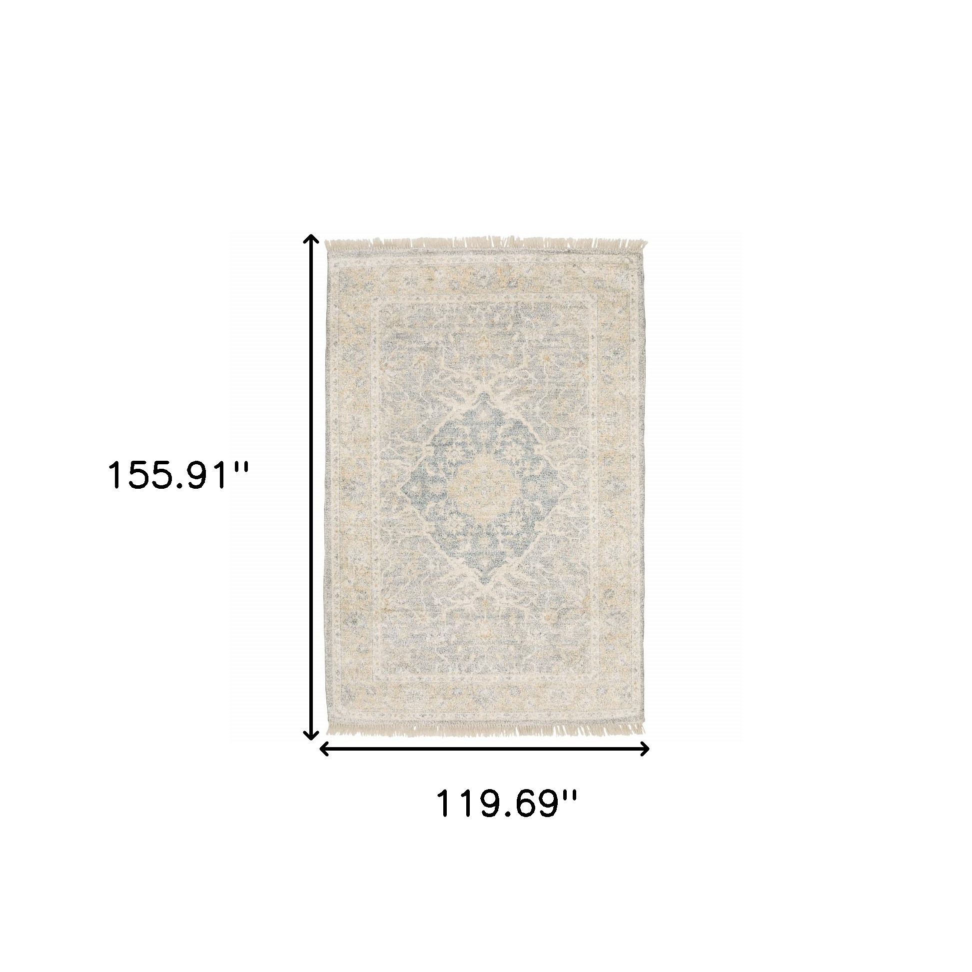 This 10' x 13' grey and beige oriental hand loomed stain resistant area rug with fringe, is a great way to add warmth to a room. This rectangle shaped rug features a oriental design in grey and beige to give it visual interest. A classic shape marries with good looking design for your space Ideal for spaces with kids and pets, this rug is stain resistant to help repel stains and spilled liquids. Tassel ends bring a timeless and fashionable look to your interior. Crafted by skilled artisans, this hand loomed rug is genuine and unique. No two will be exactly alike. Area Rugs help to give warmth and sense of home to your space. 0.23" H x 119.69" W x 155.91" D