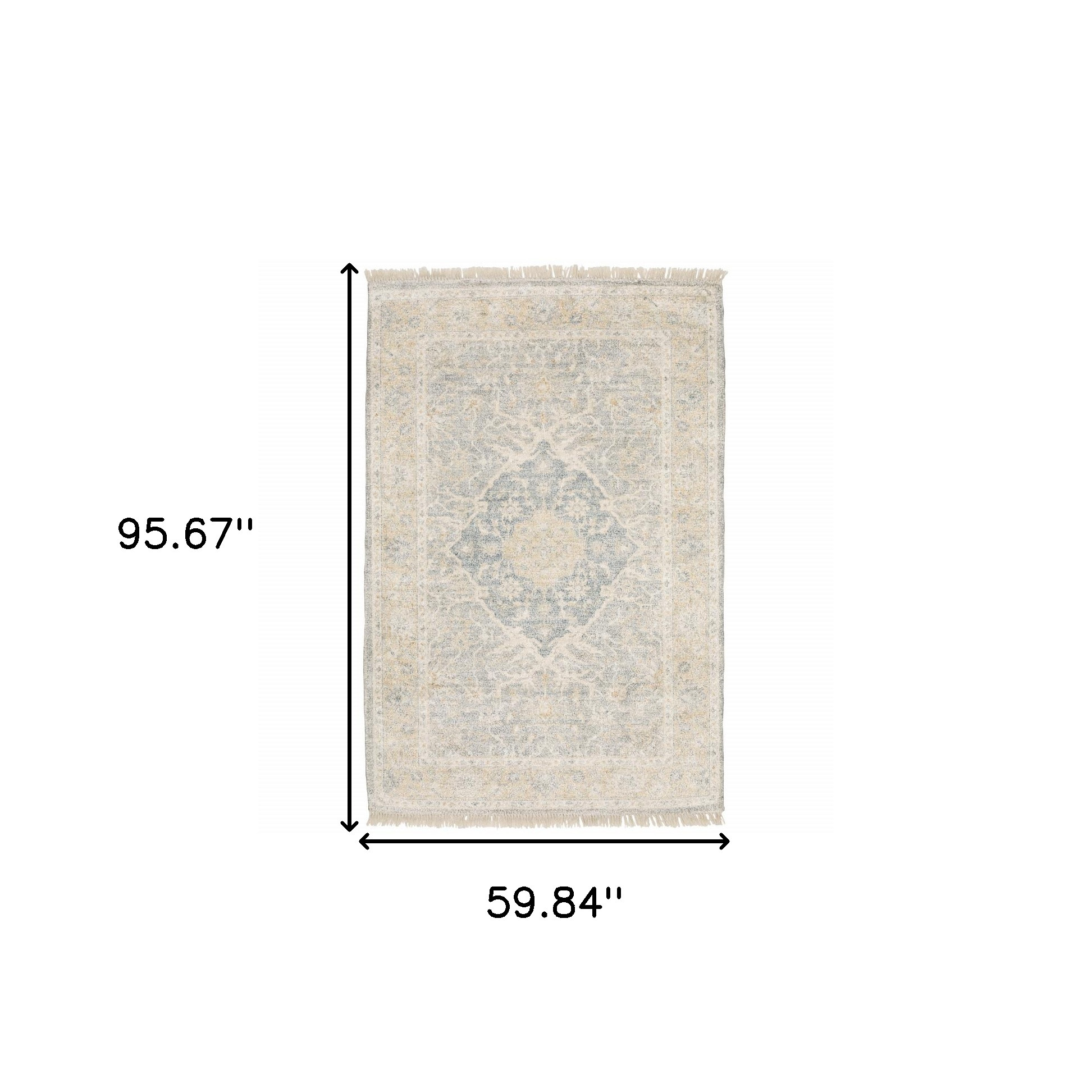 Add some artistry to your room with this 5' x 8' grey and beige oriental hand loomed stain resistant area rug with fringe. This rectangle shaped rug features a oriental design in grey and beige to give it visual interest. A classic shape marries with good looking design for your space Ideal for spaces with kids and pets, this rug is stain resistant to help repel stains and spilled liquids. Tassel ends bring a timeless and fashionable look to your interior. Crafted by skilled artisans, this hand loomed rug is genuine and unique. No two will be exactly alike. Area Rugs help to give warmth and sense of home to your space. 0.23" H x 59.84" W x 95.67" D