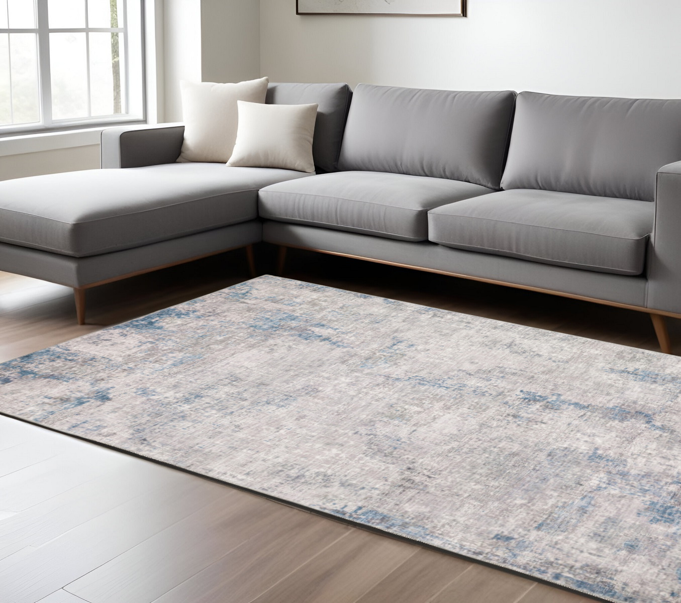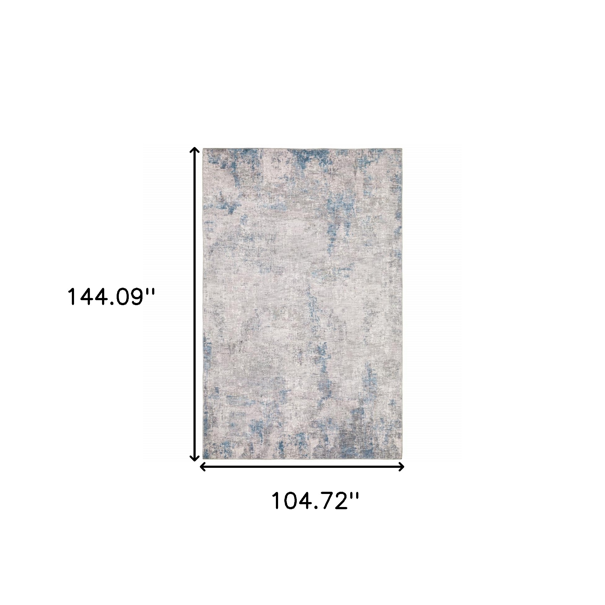Add some artistry to your room with this 9-foot x 12-foot blue and gray abstract distressed area rug. Ideal for spaces with kids and pets, this rug is stain resistant to help repel dirt and spilled liquids. Built to last, this rug crafted from polyester fibers is known for its durability and long lasting appeal. Rugs are a great way to showcase your style, hide imperfections, warm your home and reduce noise. 104.72-inch h x 144.09-inch w x 0.11-inch d.