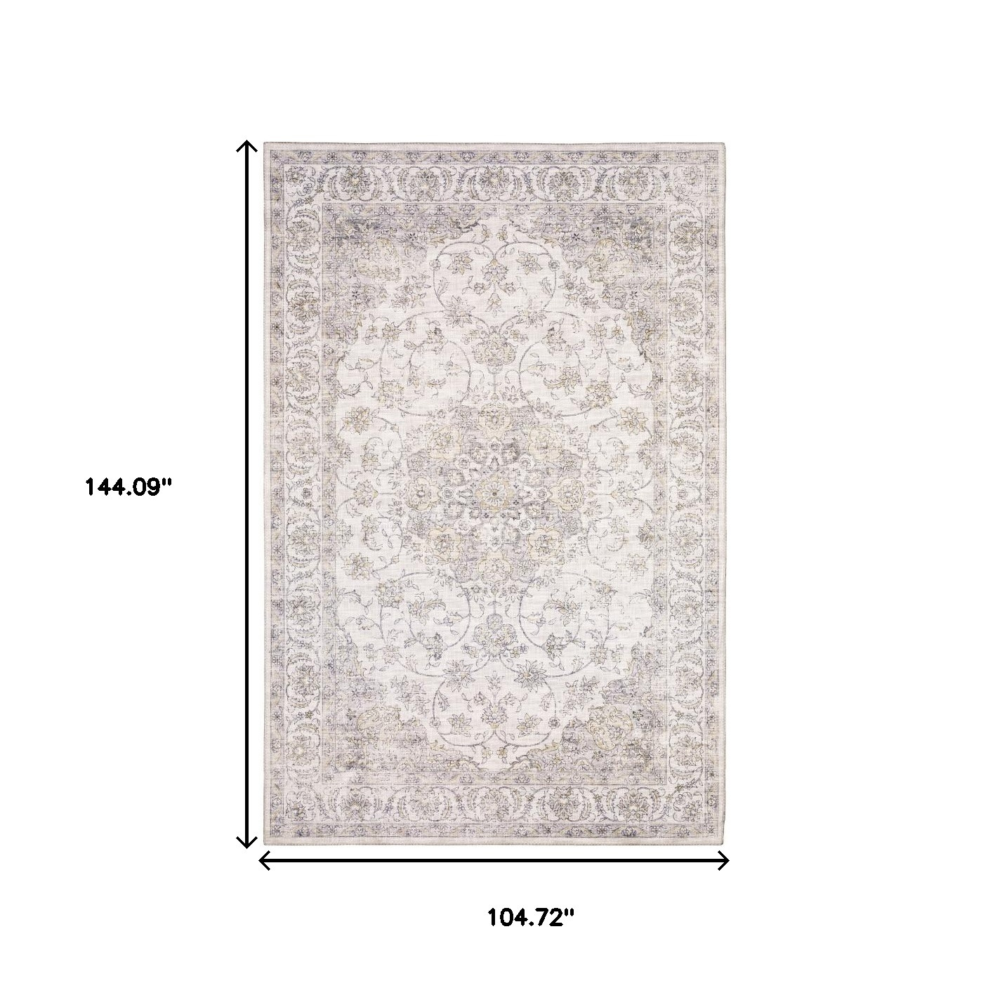 Add great coloration and comfortable texture to your space with this 9' x 12' beige gold and grey oriental power loom stain resistant area rug. This rectangle shaped rug features a oriental design in beige gold and grey to give it visual interest. A classic shape marries with good looking design for your space Ideal for spaces with kids and pets, this rug is stain resistant to help repel stains and spilled liquids. Place this area rug against a hardwood or tile floor and it will enliven your living space with style and sophistication. 0.11" H x 104.72" W x 144.09" D