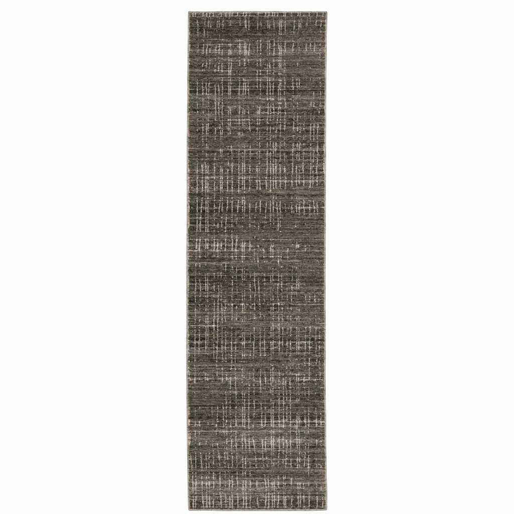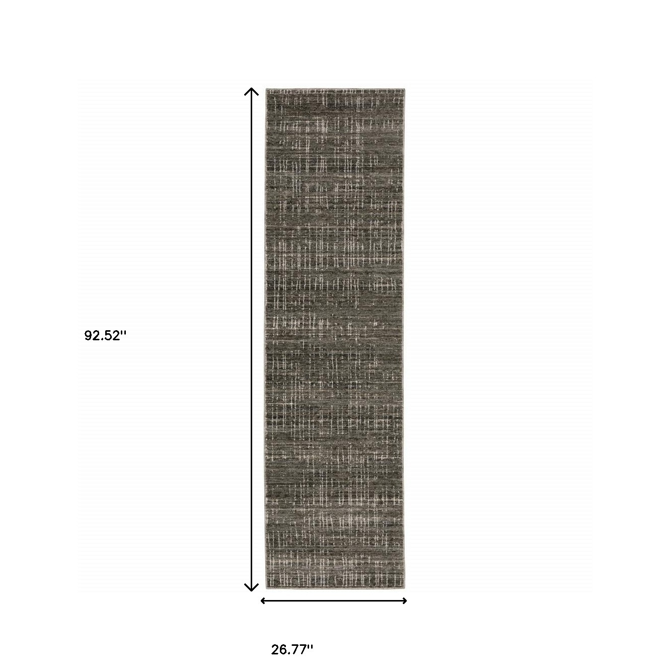 This 2' x 8' charcoal grey grey ivory tan and brown abstract power loom stain resistant runner rug, is a great way to add warmth to a room. This runner shaped rug features a abstract design in charcoal grey grey ivory tan and brown to give it visual interest. A classic shape marries with good looking design for your space Ideal for spaces with kids and pets, this rug is stain resistant to help repel stains and spilled liquids. Area Rugs help to give warmth and sense of home to your space. 0.31" H x 26.77" W x 92.52" D
