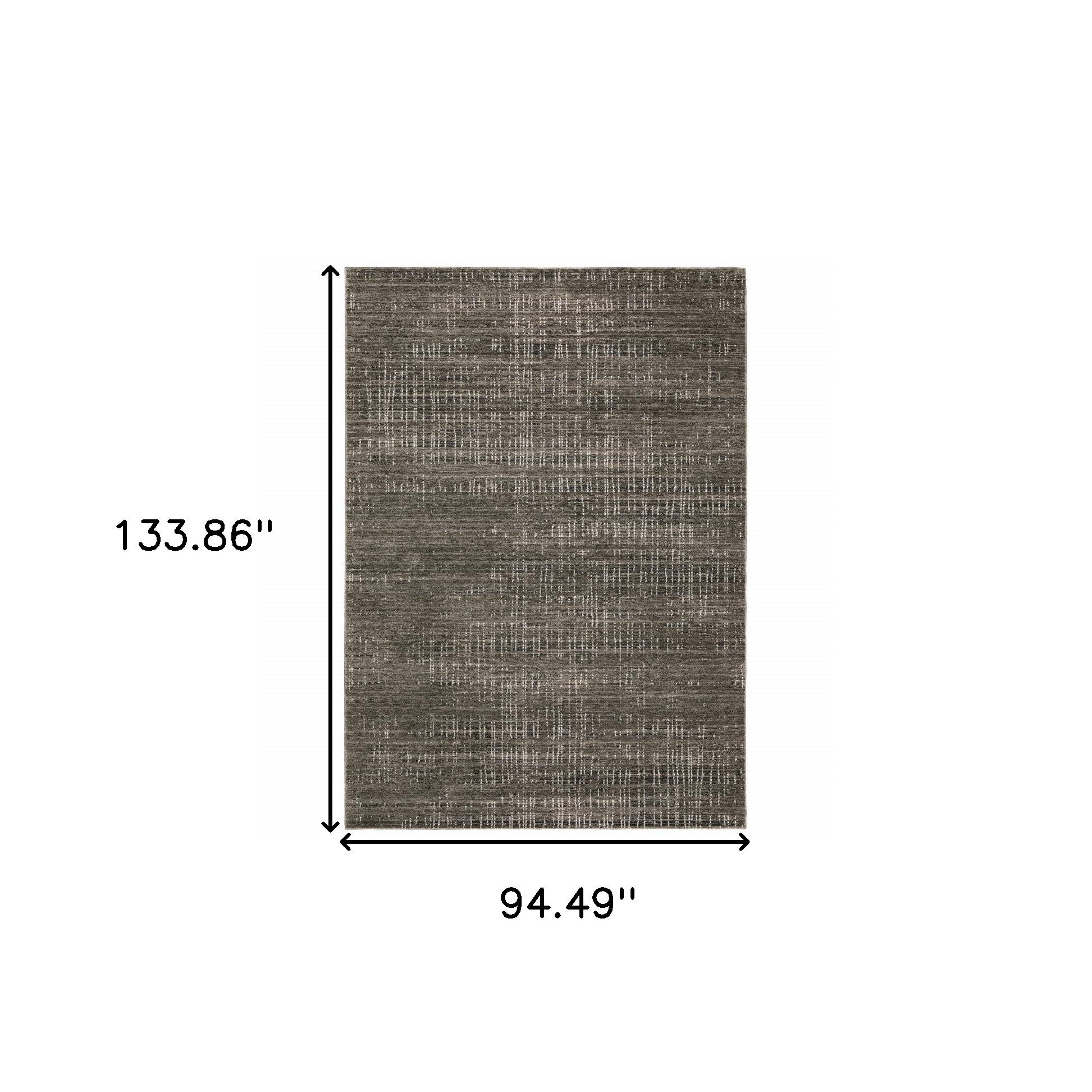 Set an inviting tone in your space with this 8-foot x 11-foot charcoal and gray abstract distressed area rug. Ideal for spaces with kids and pets, this rug is stain resistant to help repel dirt and spilled liquids. Built to last, this rug crafted from polyester fibers is known for its durability and long lasting appeal. Rugs are a great way to showcase your style, hide imperfections, warm your home and reduce noise. 94.49-inch h x 133.86-inch w x 0.31-inch d.