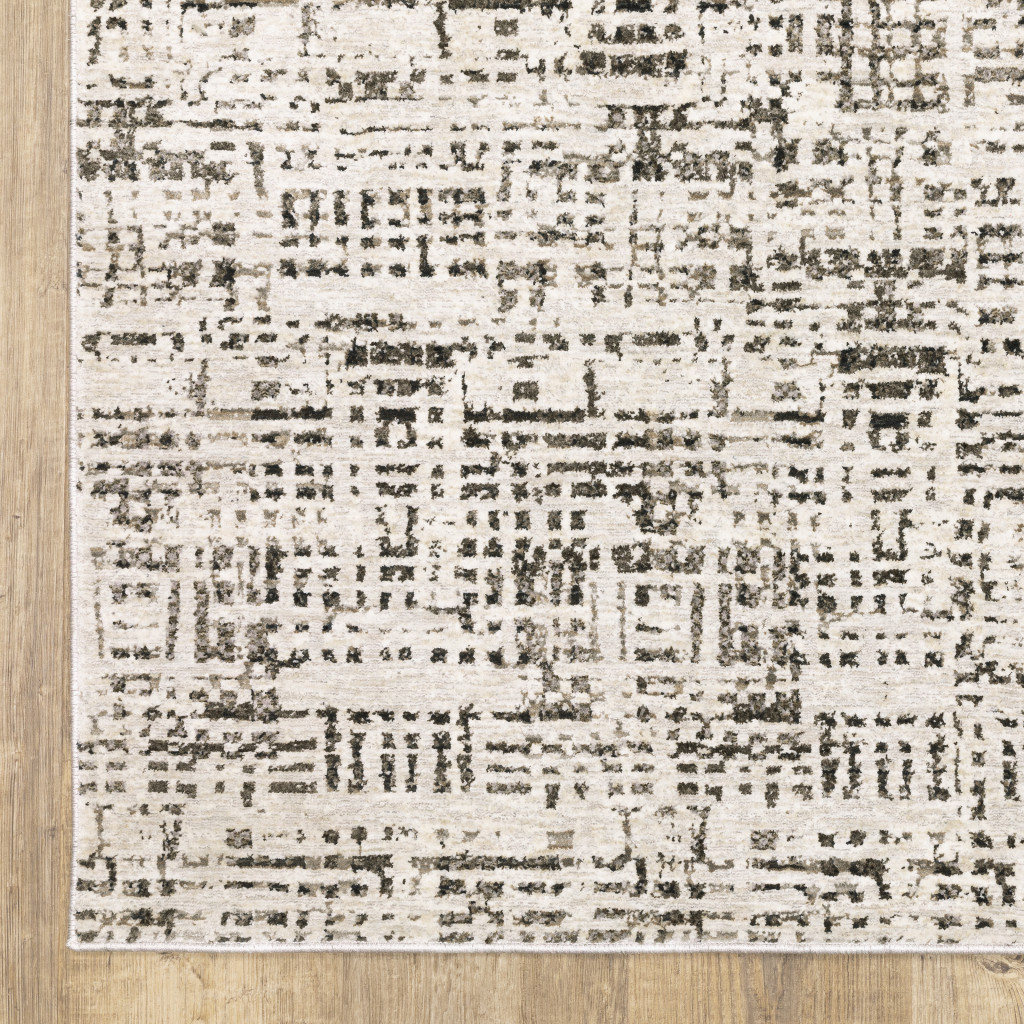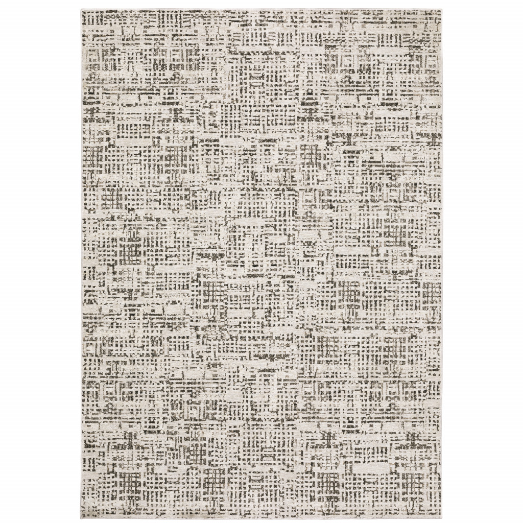 This 7-foot x 10-foot ivory and gray abstract area rug, is a great way to add warmth to a room. Ideal for spaces with kids and pets, this rug is stain resistant to help repel dirt and spilled liquids. Built to last, this rug crafted from polyester fibers is known for its durability and long lasting appeal. Rugs are a great way to showcase your style, hide imperfections, warm your home and reduce noise. 78.74-inch h x 116.54-inch w x 0.31-inch d.