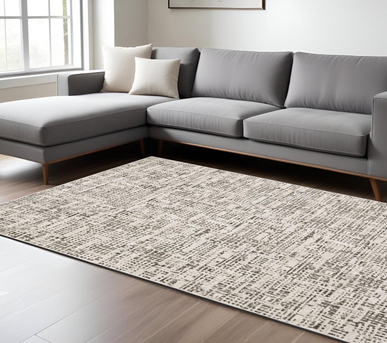 Add some artistry to your room with this 8-foot x 11-foot ivory and gray abstract area rug. Ideal for spaces with kids and pets, this rug is stain resistant to help repel dirt and spilled liquids. Built to last, this rug crafted from polyester fibers is known for its durability and long lasting appeal. Rugs are a great way to showcase your style, hide imperfections, warm your home and reduce noise. 94.49-inch h x 133.86-inch w x 0.31-inch d.
