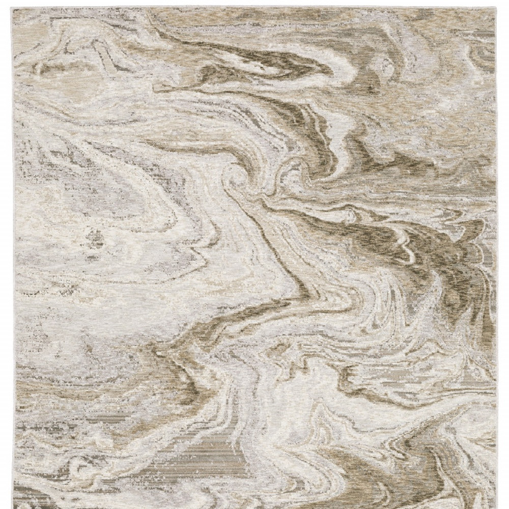 This 6' x 9' beige and ivory abstract power loom stain resistant area rug, is a great way to add warmth to a room. This rectangle shaped rug features a abstract design in beige and ivory to give it visual interest. A classic shape marries with good looking design for your space Ideal for spaces with kids and pets, this rug is stain resistant to help repel stains and spilled liquids. Place this area rug against a hardwood or tile floor and it will enliven your living space with style and sophistication. 0.31" H x 78.74" W x 116.54" D
