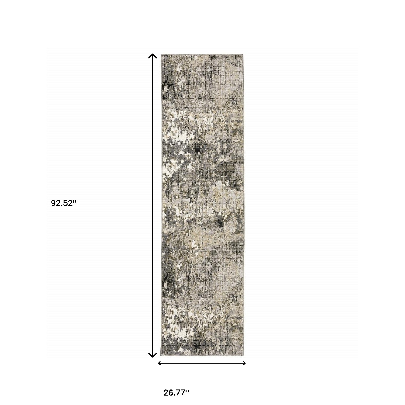 Set an inviting tone in your space with this 2' x 8' grey ivory beige charcoal black tan and brown abstract power loom stain resistant runner rug. This runner shaped rug features a abstract design in grey ivory beige charcoal black tan and brown to give it visual interest. A classic shape marries with good looking design for your space Ideal for spaces with kids and pets, this rug is stain resistant to help repel stains and spilled liquids. Place this area rug against a hardwood or tile floor and it will enliven your living space with style and sophistication. 0.31" H x 26.77" W x 92.52" D