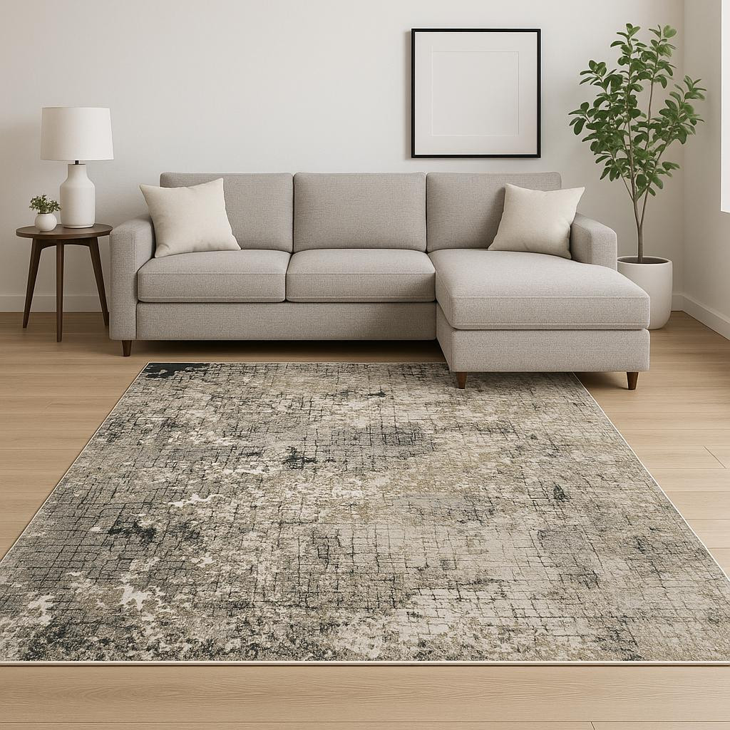 This 8' x 11' grey ivory beige charcoal black tan and brown abstract power loom stain resistant area rug, is a great way to add warmth to a room. This rectangle shaped rug features a abstract design in grey ivory beige charcoal black tan and brown to give it visual interest. A classic shape marries with good looking design for your space Ideal for spaces with kids and pets, this rug is stain resistant to help repel stains and spilled liquids. Place this area rug against a hardwood or tile floor and it will enliven your living space with style and sophistication. 0.31" H x 94.49" W x 133.86" D