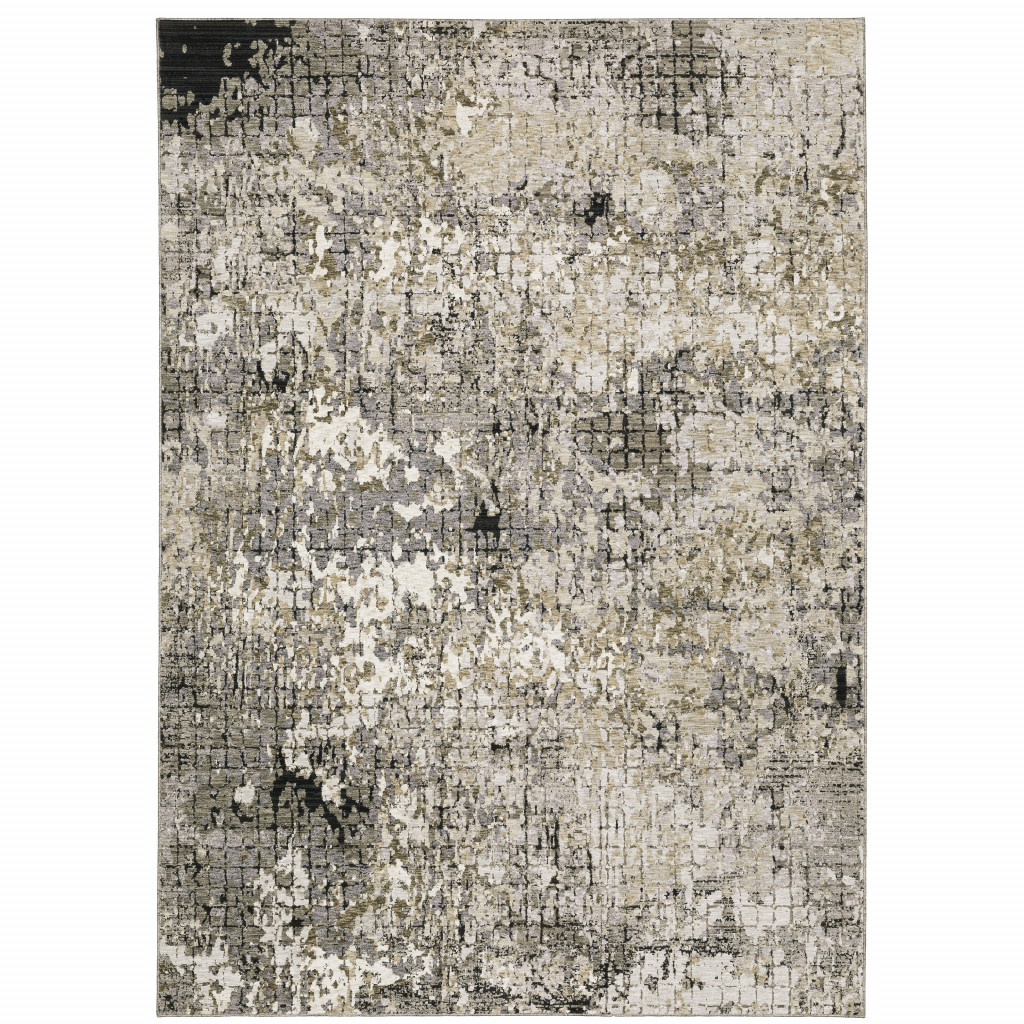Add some artistry to your room with this 10' x 13' grey ivory beige charcoal black tan and brown abstract power loom stain resistant area rug. This rectangle shaped rug features a abstract design in grey ivory beige charcoal black tan and brown to give it visual interest. A classic shape marries with good looking design for your space Ideal for spaces with kids and pets, this rug is stain resistant to help repel stains and spilled liquids. Area Rugs help to give warmth and sense of home to your space. 0.31" H x 118.11" W x 155.12" D