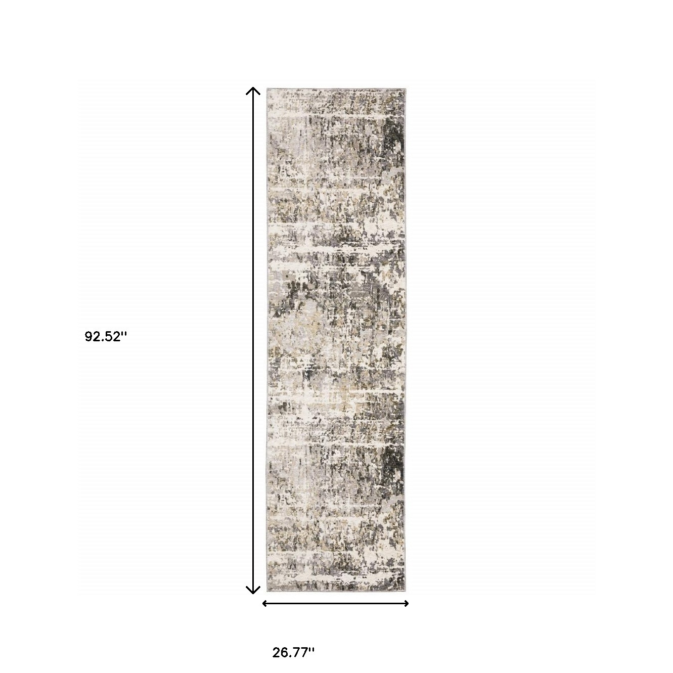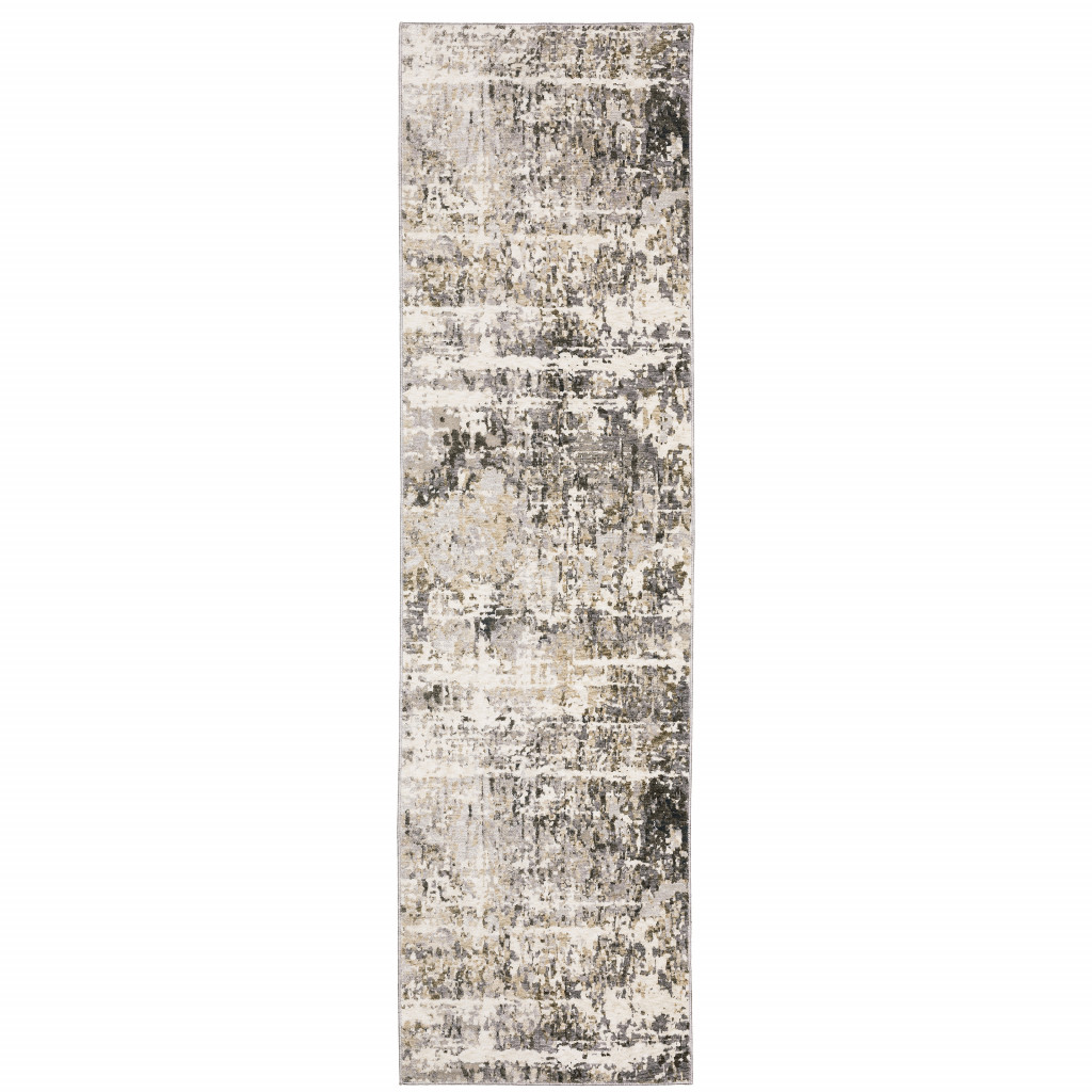 This 2' x 8' grey ivory beige charcoal black tan and brown abstract power loom stain resistant runner rug, is a great way to add warmth to a room. This runner shaped rug features a abstract design in grey ivory beige charcoal black tan and brown to give it visual interest. A classic shape marries with good looking design for your space Ideal for spaces with kids and pets, this rug is stain resistant to help repel stains and spilled liquids. Area Rugs help to give warmth and sense of home to your space. 0.31" H x 26.77" W x 92.52" D