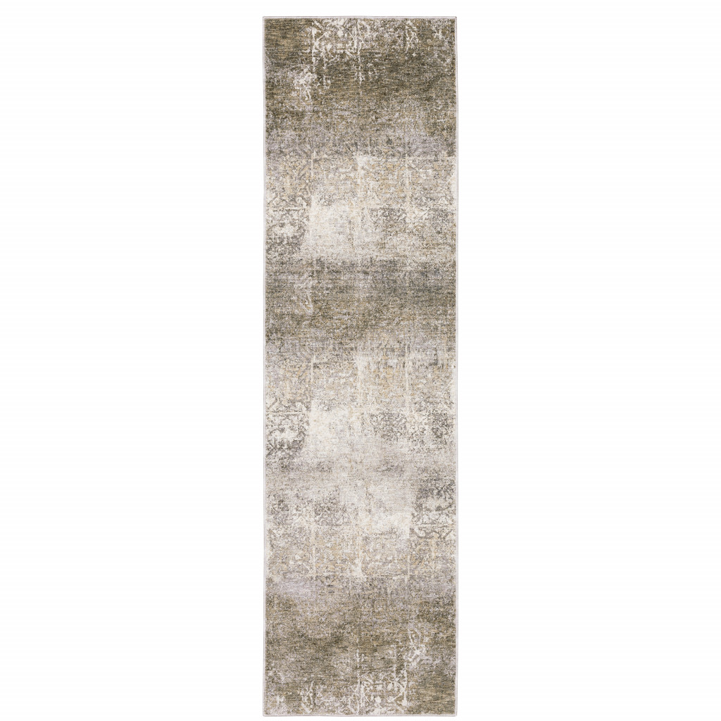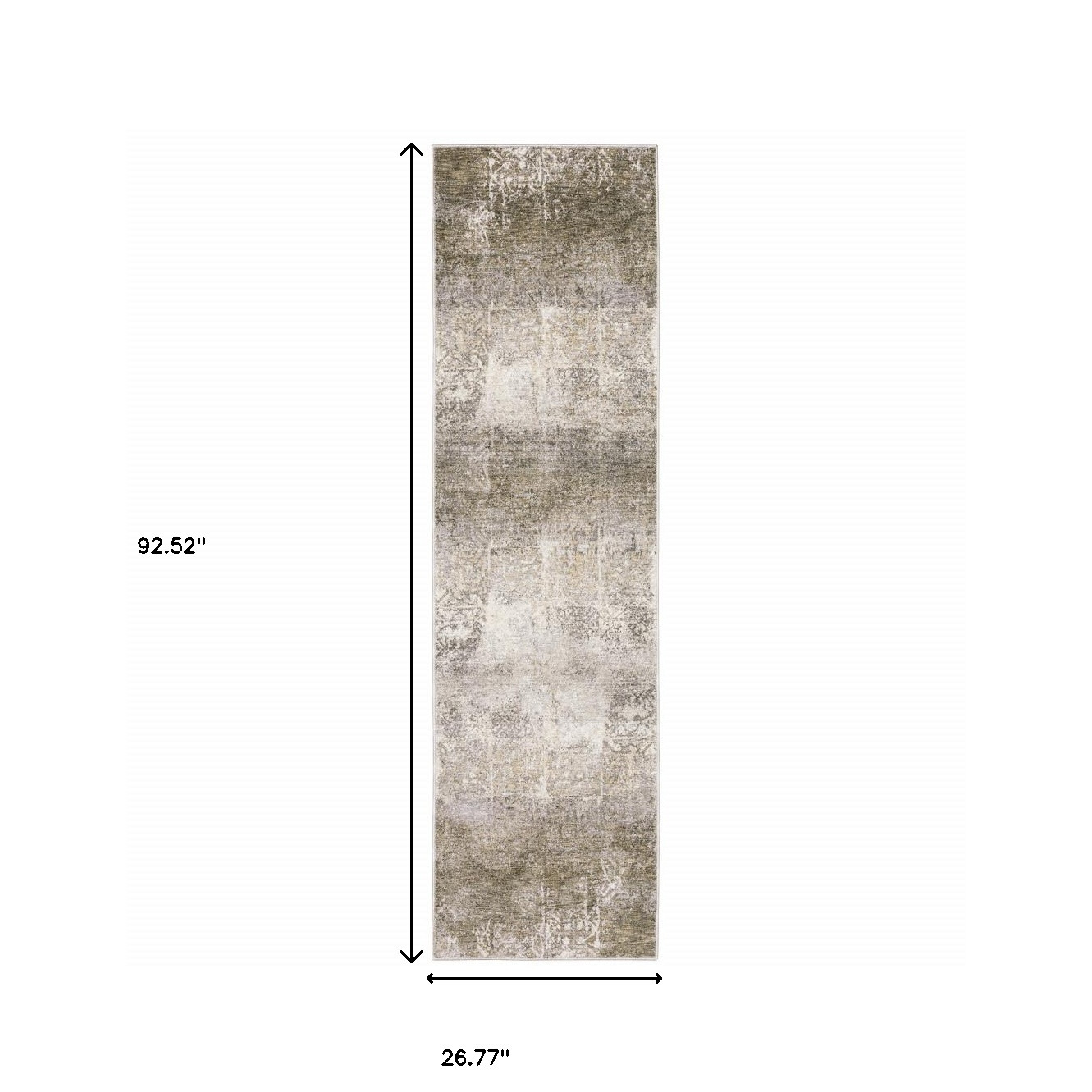 This 2' x 8' ivory grey tan brown and beige abstract power loom stain resistant runner rug, is a great way to add warmth to a room. This runner shaped rug features a abstract design in ivory grey tan brown and beige to give it visual interest. A classic shape marries with good looking design for your space Ideal for spaces with kids and pets, this rug is stain resistant to help repel stains and spilled liquids. Area Rugs help to give warmth and sense of home to your space. 0.31" H x 26.77" W x 92.52" D