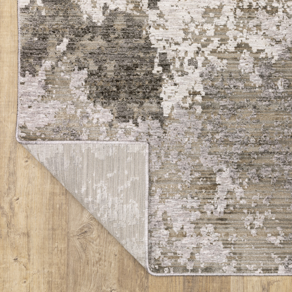 Add some artistry to your room with this 10' x 13' grey ivory beige tan brown and black abstract power loom stain resistant area rug. This rectangle shaped rug features a abstract design in grey ivory beige tan brown and black to give it visual interest. A classic shape marries with good looking design for your space Ideal for spaces with kids and pets, this rug is stain resistant to help repel stains and spilled liquids. Place this area rug against a hardwood or tile floor and it will enliven your living space with style and sophistication. 0.31" H x 118.11" W x 155.12" D