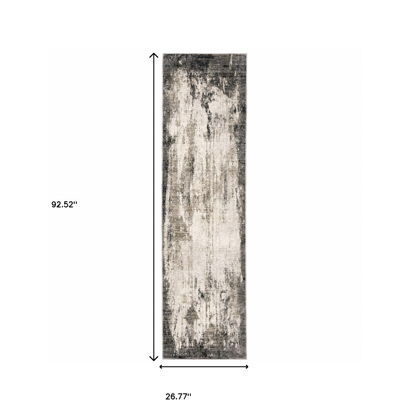 This 2' x 8' grey ivory charcoal tan black and beige abstract power loom stain resistant runner rug, is a great way to add warmth to a room. This runner shaped rug features a abstract design in grey ivory charcoal tan black and beige to give it visual interest. A classic shape marries with good looking design for your space Ideal for spaces with kids and pets, this rug is stain resistant to help repel stains and spilled liquids. Area Rugs help to give warmth and sense of home to your space. 0.31" H x 26.77" W x 92.52" D