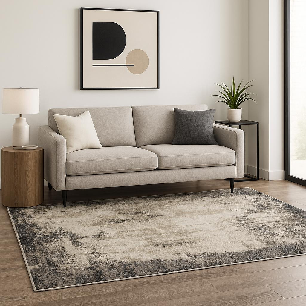 Add some artistry to your room with this 5' x 8' grey ivory charcoal tan black and beige abstract power loom stain resistant area rug. This rectangle shaped rug features a abstract design in grey ivory charcoal tan black and beige to give it visual interest. A classic shape marries with good looking design for your space Ideal for spaces with kids and pets, this rug is stain resistant to help repel stains and spilled liquids. Place this area rug against a hardwood or tile floor and it will enliven your living space with style and sophistication. 0.31" H x 62.99" W x 92.52" D