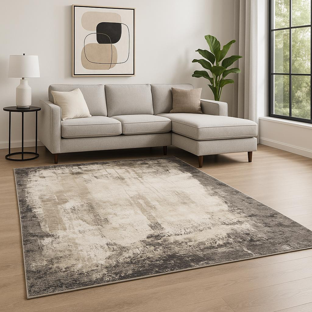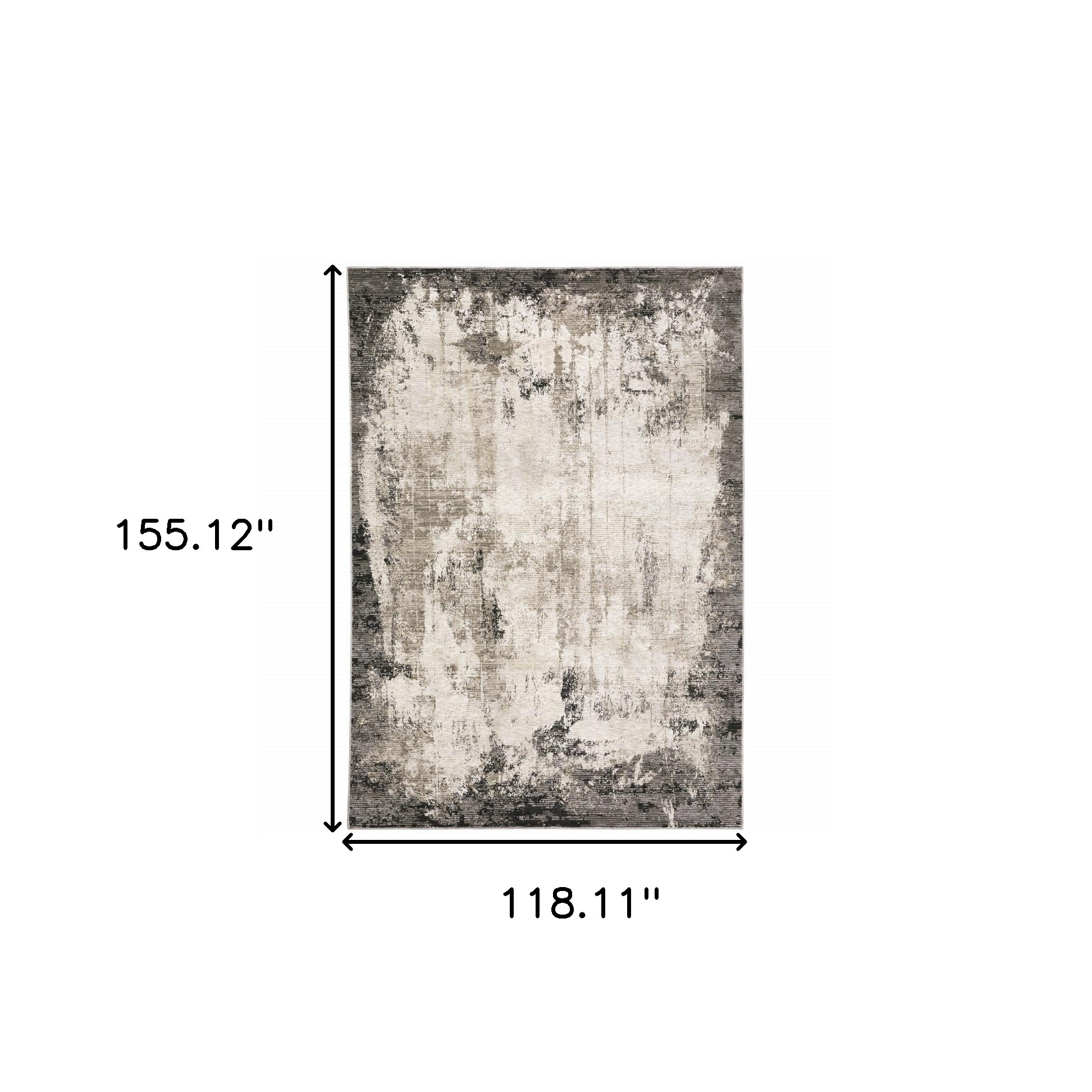 This 10' x 13' grey ivory charcoal tan black and beige abstract power loom stain resistant area rug, is a great way to add warmth to a room. This rectangle shaped rug features a abstract design in grey ivory charcoal tan black and beige to give it visual interest. A classic shape marries with good looking design for your space Ideal for spaces with kids and pets, this rug is stain resistant to help repel stains and spilled liquids. Place this area rug against a hardwood or tile floor and it will enliven your living space with style and sophistication. 0.31" H x 118.11" W x 155.12" D