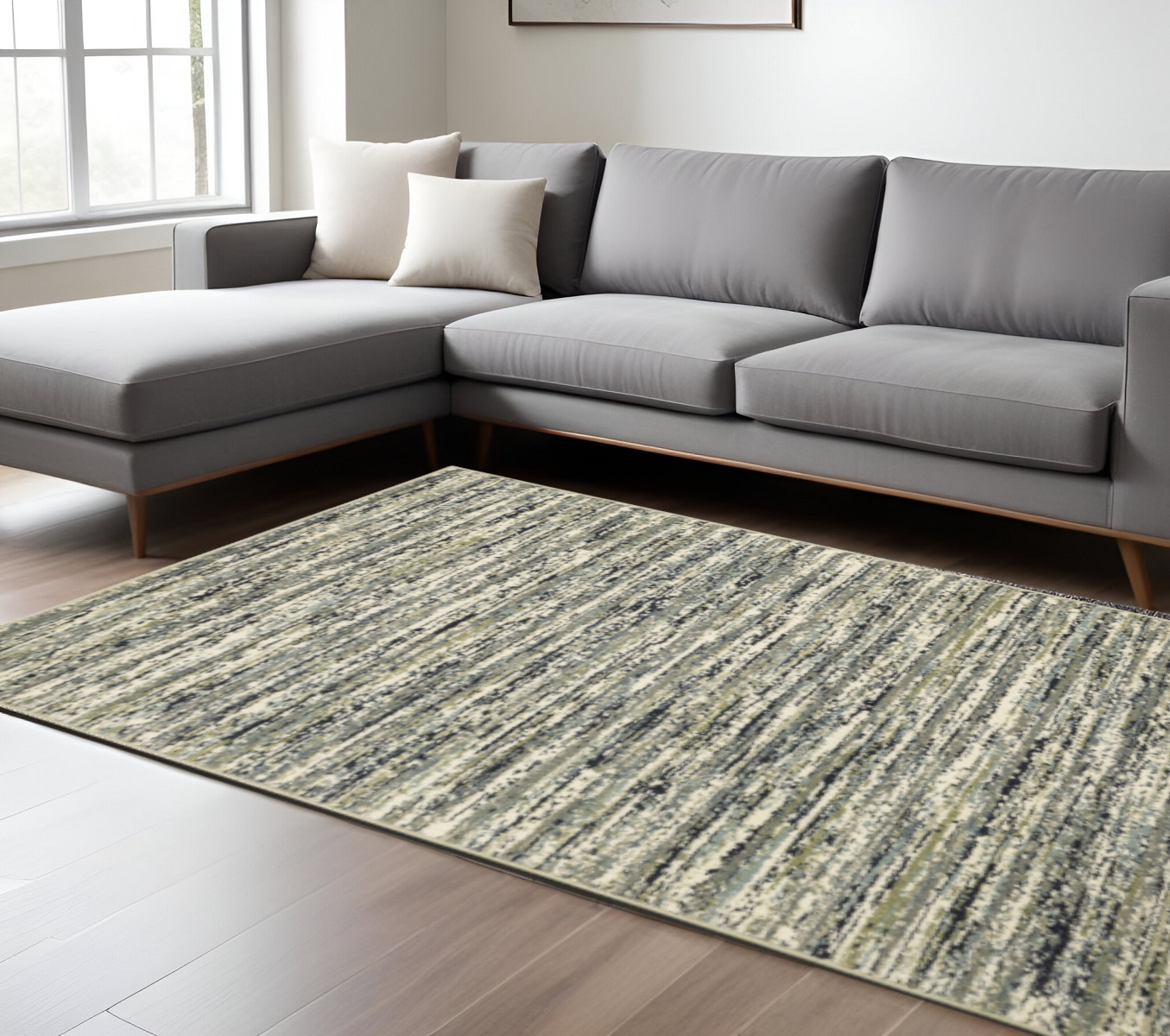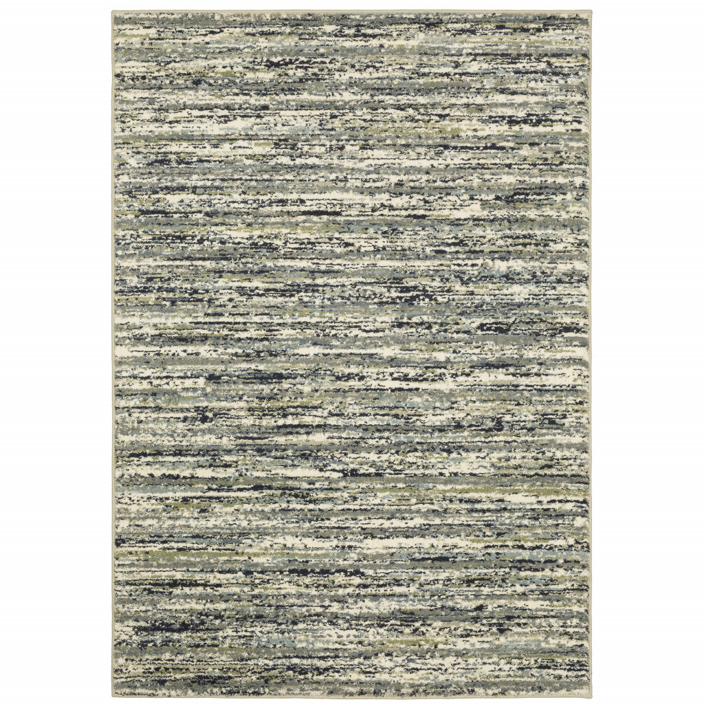 Add great coloration and comfortable texture to your space with this 10' x 13' blue green light blue grey and ivory abstract power loom stain resistant area rug. This rectangle shaped rug features a abstract design in blue green light blue grey and ivory to give it visual interest. A classic shape marries with good looking design for your space Ideal for spaces with kids and pets, this rug is stain resistant to help repel stains and spilled liquids. Place this area rug against a hardwood or tile floor and it will enliven your living space with style and sophistication. 0.79" H x 118.11" W x 153.54" D