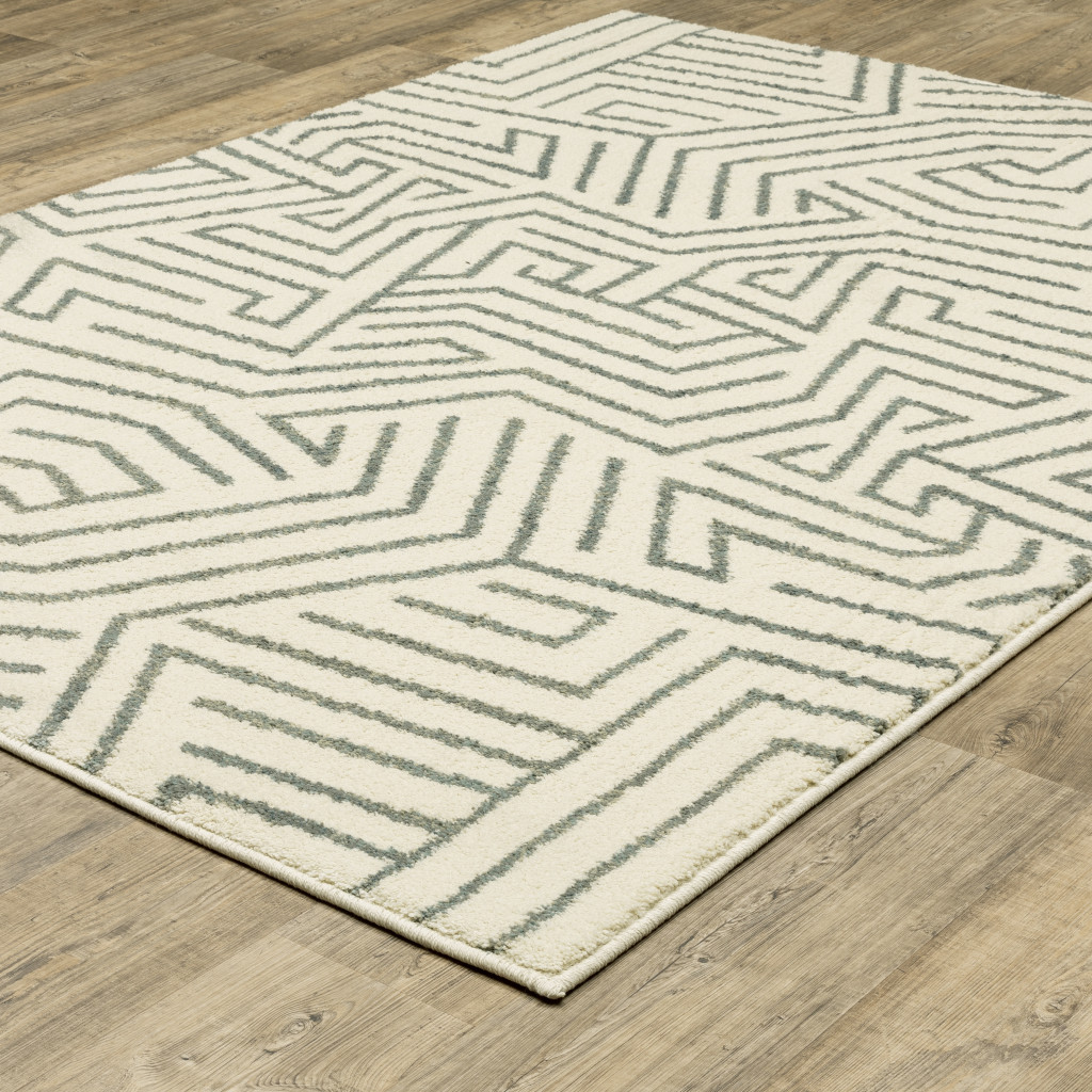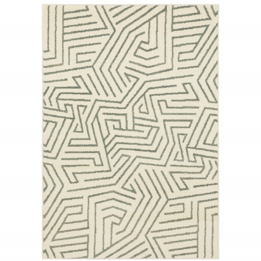 Add great coloration and comfortable texture to your space with this 10' x 13' gray and ivory geometric power loom area rug. This rectangle shaped rug features a geometric design in gray and ivory to give it visual interest. A classic shape marries with good looking design for your space Ideal for spaces with kids and pets, this rug is stain resistant to help repel stains and spilled liquids. Area Rugs help to give warmth and sense of home to your space. 0.79" H x 118.11" W x 153.54" D