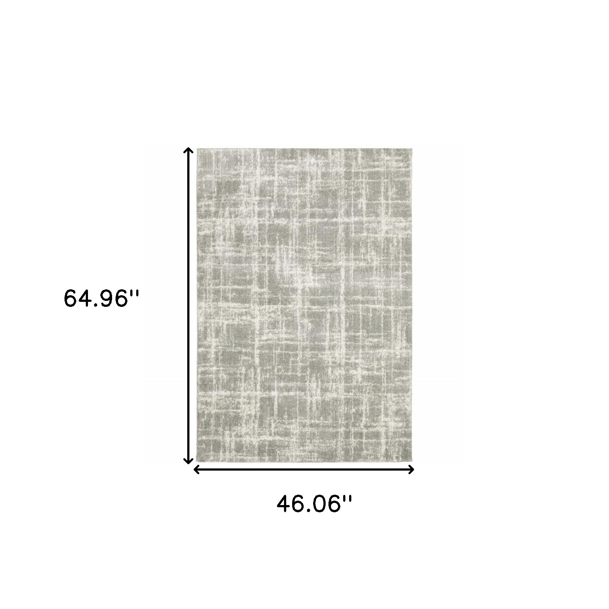 This 4' x 6' grey and ivory abstract shag power loom stain resistant area rug, is a great way to add warmth to a room. This rectangle shaped rug features a abstract design in grey and ivory to give it visual interest. A classic shape marries with good looking design for your space Ideal for spaces with kids and pets, this rug is stain resistant to help repel stains and spilled liquids. The retro shag construction of this luxurious rug will provide a soft and comfortable barrier to color tile and hardwood floors. Place this area rug against a hardwood or tile floor and it will enliven your living space with style and sophistication. 0.98" H x 46.06" W x 64.96" D