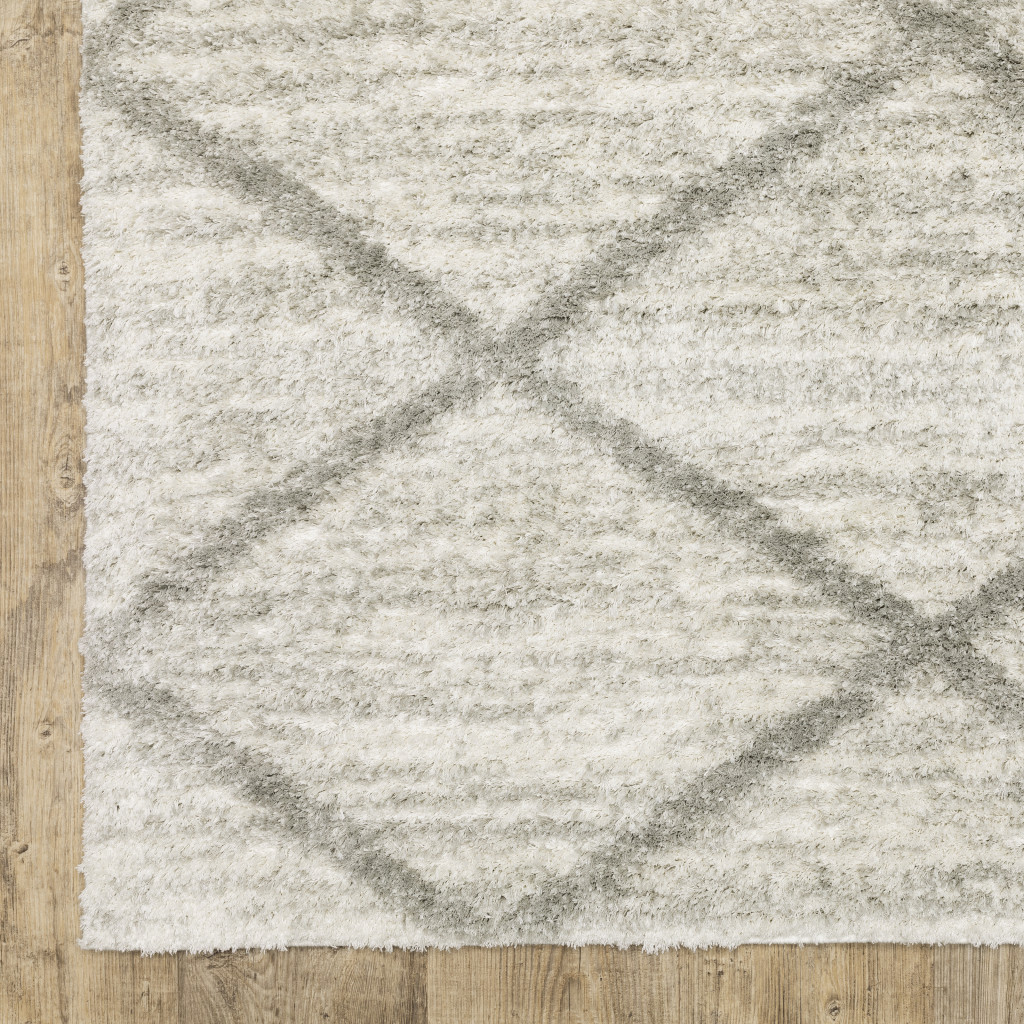 Add some artistry to your room with this 5' x 8' ivory and grey geometric shag power loom stain resistant area rug. This rectangle shaped rug features a geometric design in ivory and grey to give it visual interest. A classic shape marries with good looking design for your space Ideal for spaces with kids and pets, this rug is stain resistant to help repel stains and spilled liquids. The retro shag construction of this luxurious rug will provide a soft and comfortable barrier to color tile and hardwood floors. Place this area rug against a hardwood or tile floor and it will enliven your living space with style and sophistication. 0.98" H x 62.99" W x 90.55" D