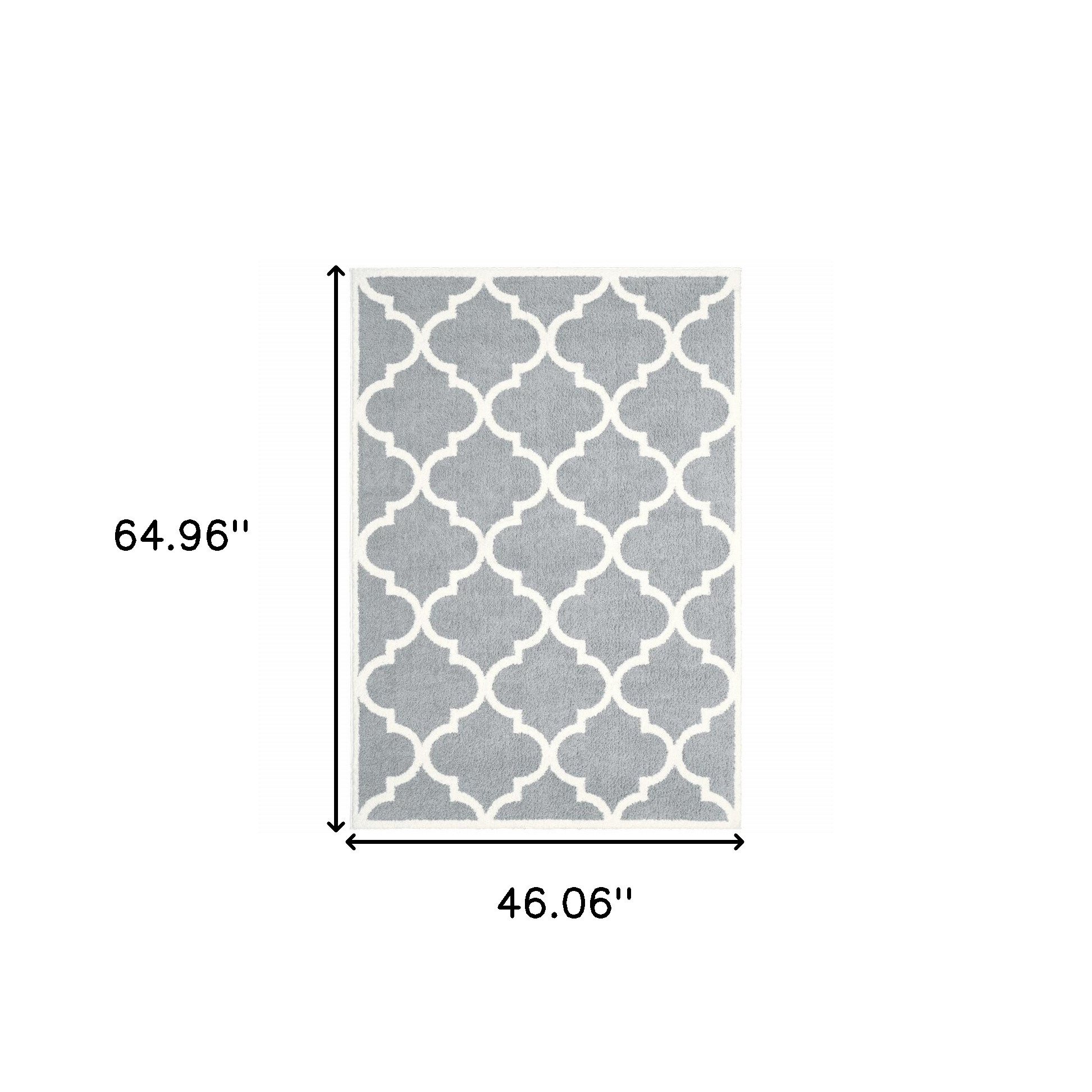 This 4' x 6' grey and ivory geometric shag power loom stain resistant area rug, is a great way to add warmth to a room. This rectangle shaped rug features a geometric design in grey and ivory to give it visual interest. A classic shape marries with good looking design for your space Ideal for spaces with kids and pets, this rug is stain resistant to help repel stains and spilled liquids. The retro shag construction of this luxurious rug will provide a soft and comfortable barrier to color tile and hardwood floors. Place this area rug against a hardwood or tile floor and it will enliven your living space with style and sophistication. 0.98" H x 46.06" W x 64.96" D