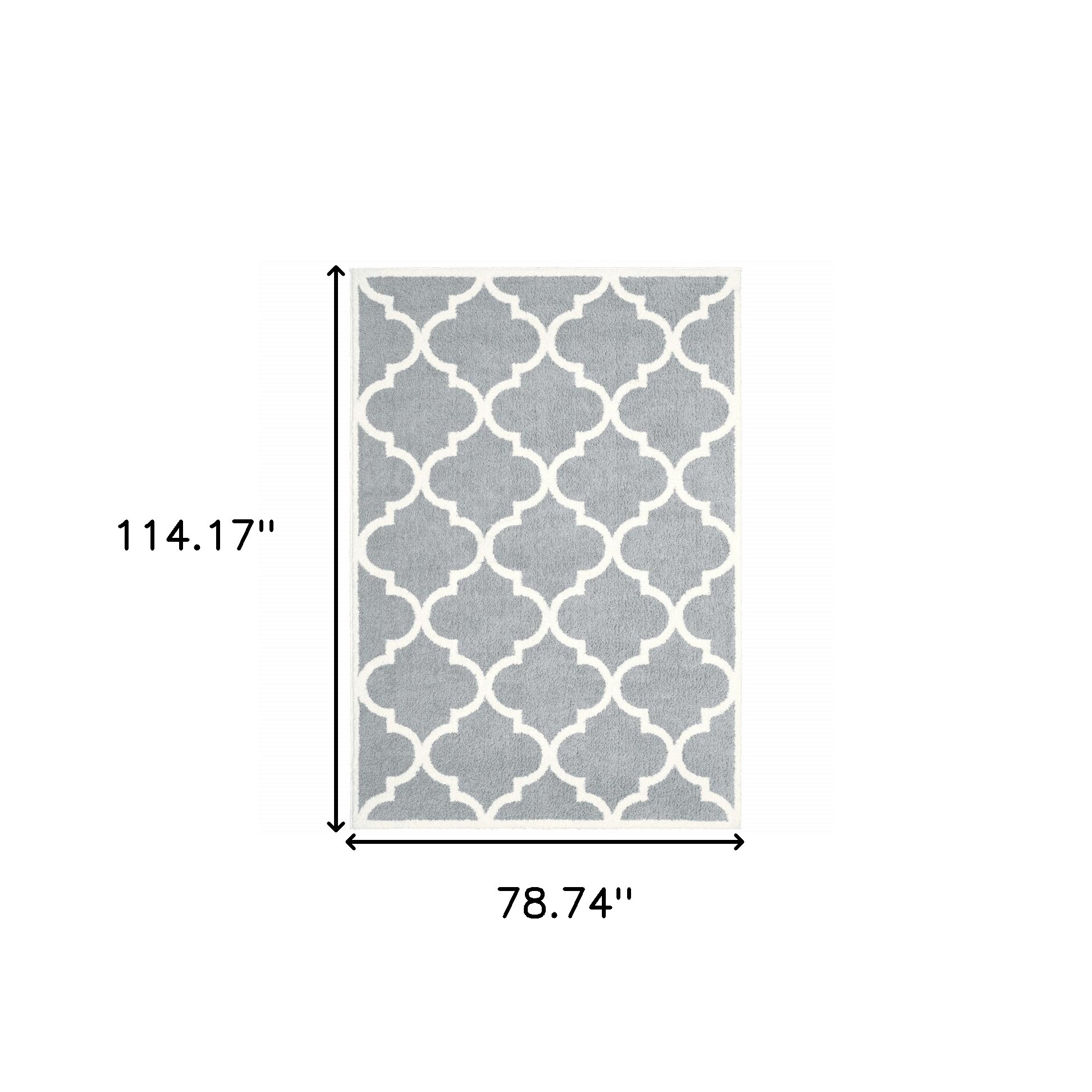 Add some artistry to your room with this 7-foot x 10-foot gray and ivory geometric shag area rug. Ideal for spaces with kids and pets, this rug is stain resistant to help repel dirt and spilled liquids. Built to last, this rug crafted from polyester fibers is known for its durability and long lasting appeal. Rugs are a great way to showcase your style, hide imperfections, warm your home and reduce noise. The retro shag construction of this luxurious rug will provide a soft and comfortable barrier to color tile and hardwood floors. 78.74-inch h x 114.17-inch w x 0.98-inch d.