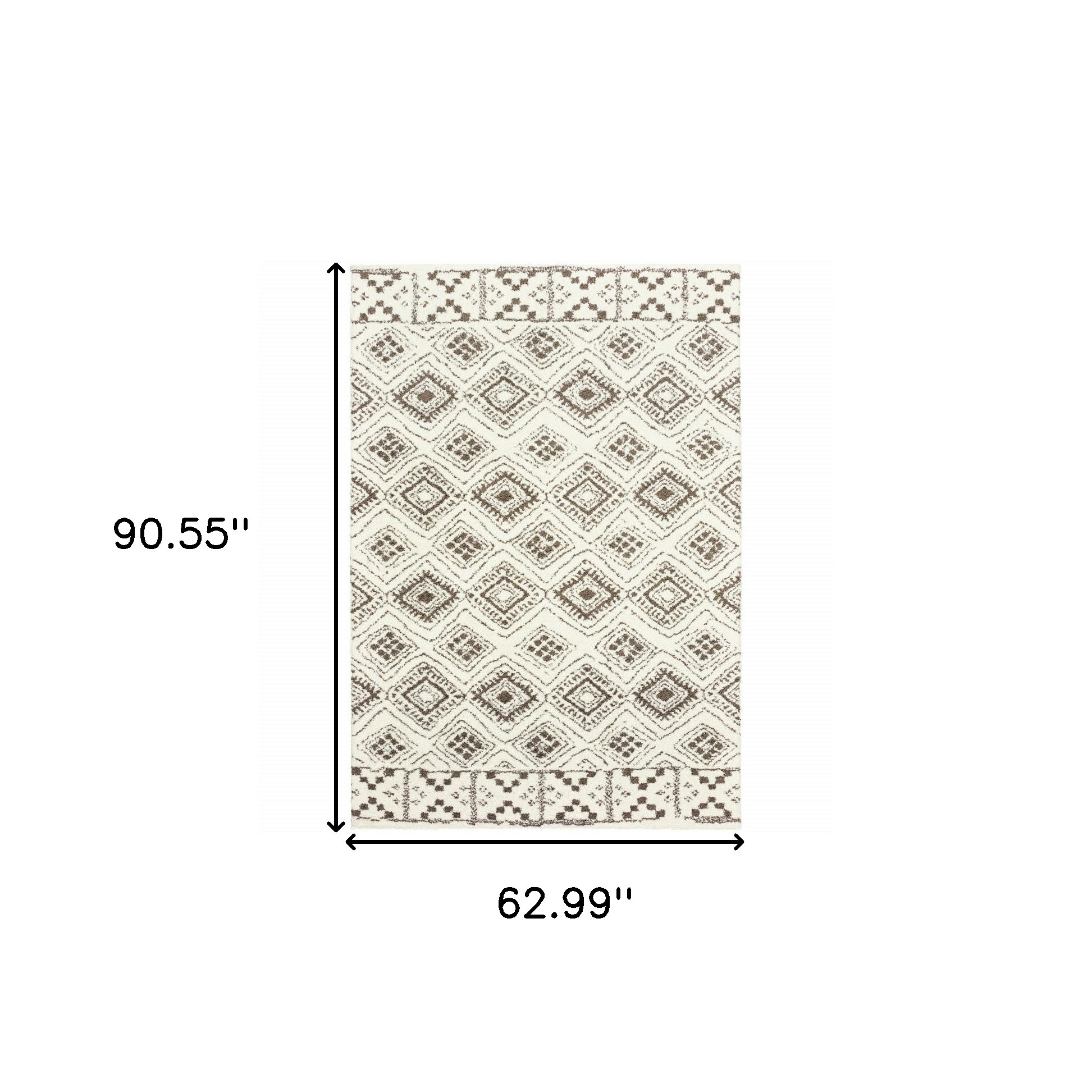 Add some artistry to your room with this 5' x 8' ivory and brown geometric shag power loom stain resistant area rug. This rectangle shaped rug features a geometric design in ivory and brown to give it visual interest. A classic shape marries with good looking design for your space Ideal for spaces with kids and pets, this rug is stain resistant to help repel stains and spilled liquids. The retro shag construction of this luxurious rug will provide a soft and comfortable barrier to color tile and hardwood floors. Place this area rug against a hardwood or tile floor and it will enliven your living space with style and sophistication. 0.98" H x 62.99" W x 90.55" D