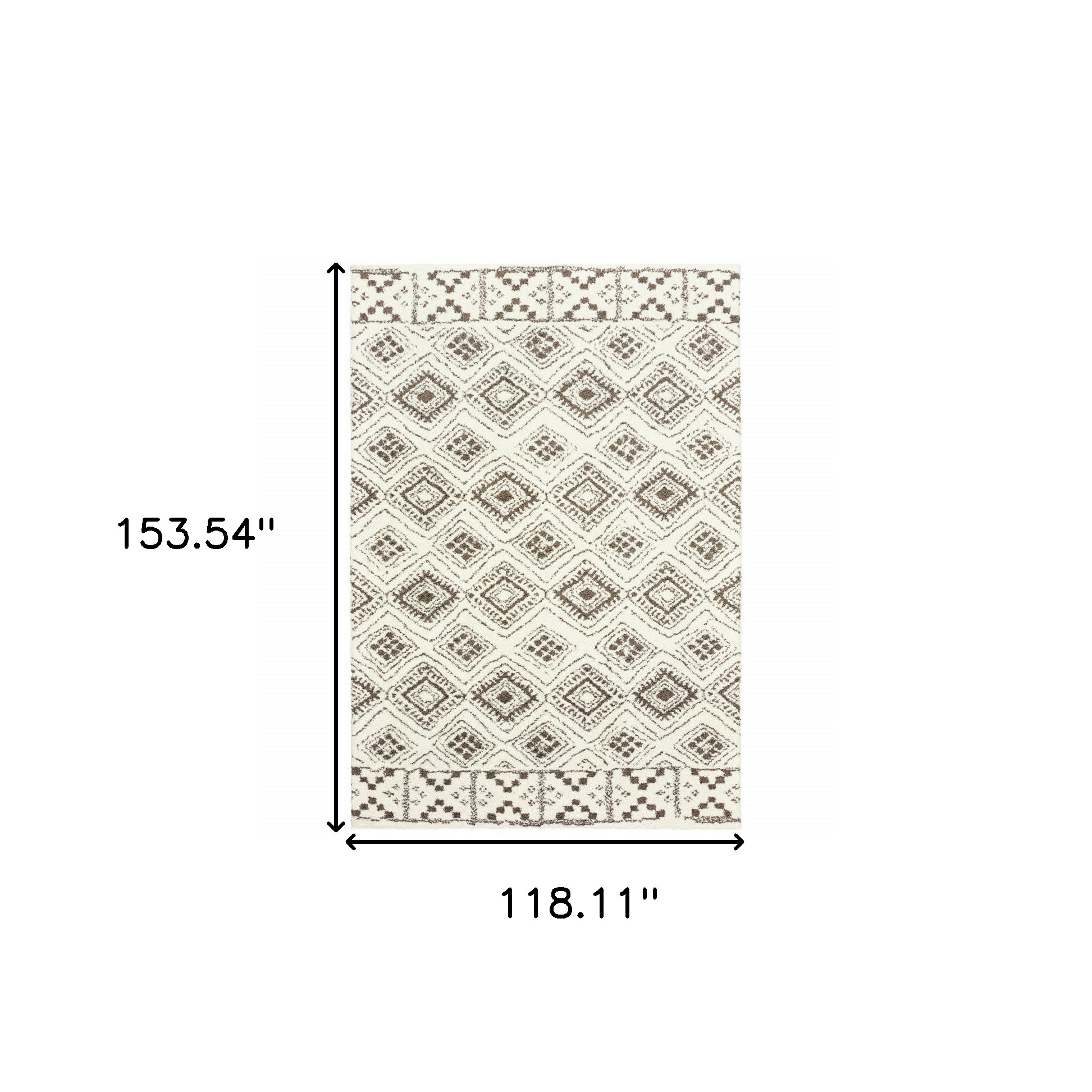 Add great coloration and comfortable texture to your space with this 10' x 13' ivory and brown geometric shag power loom stain resistant area rug. This rectangle shaped rug features a geometric design in ivory and brown to give it visual interest. A classic shape marries with good looking design for your space Ideal for spaces with kids and pets, this rug is stain resistant to help repel stains and spilled liquids. The retro shag construction of this luxurious rug will provide a soft and comfortable barrier to color tile and hardwood floors. Area Rugs help to give warmth and sense of home to your space. 0.98" H x 118.11" W x 153.54" D