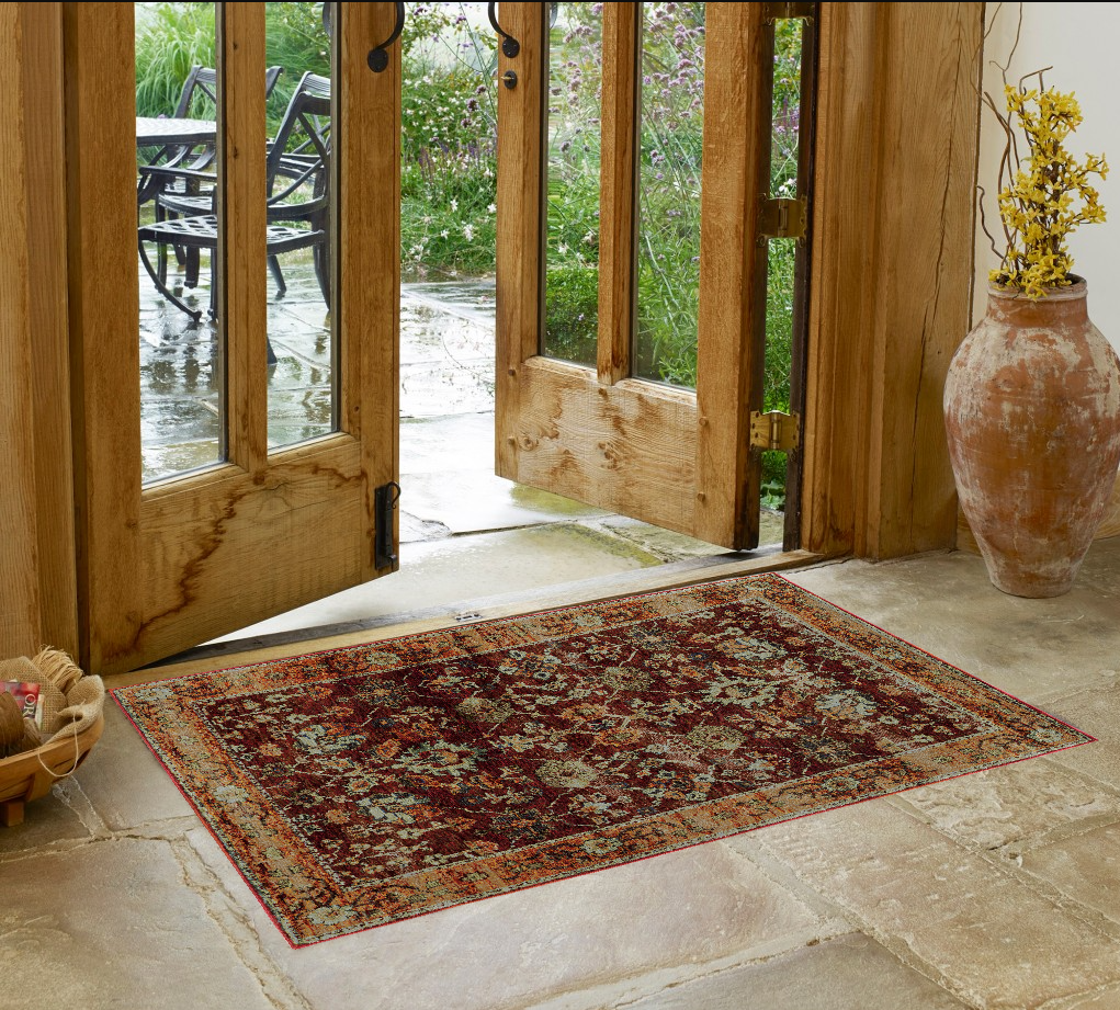 Add some artistry to your room with this 2-foot x 3-foot red and gold oriental power loom area rug. This rectangle shaped rug features a oriental design in red and gold to give it visual interest. A classic shape marries with good looking design for your space ideal for spaces with kids and pets, this rug is stain resistant to help repel stains and spilled liquids. Area rugs help to give warmth and sense of home to your space. 22.83-inch H x 39.37-inch W x 0.55-inch D