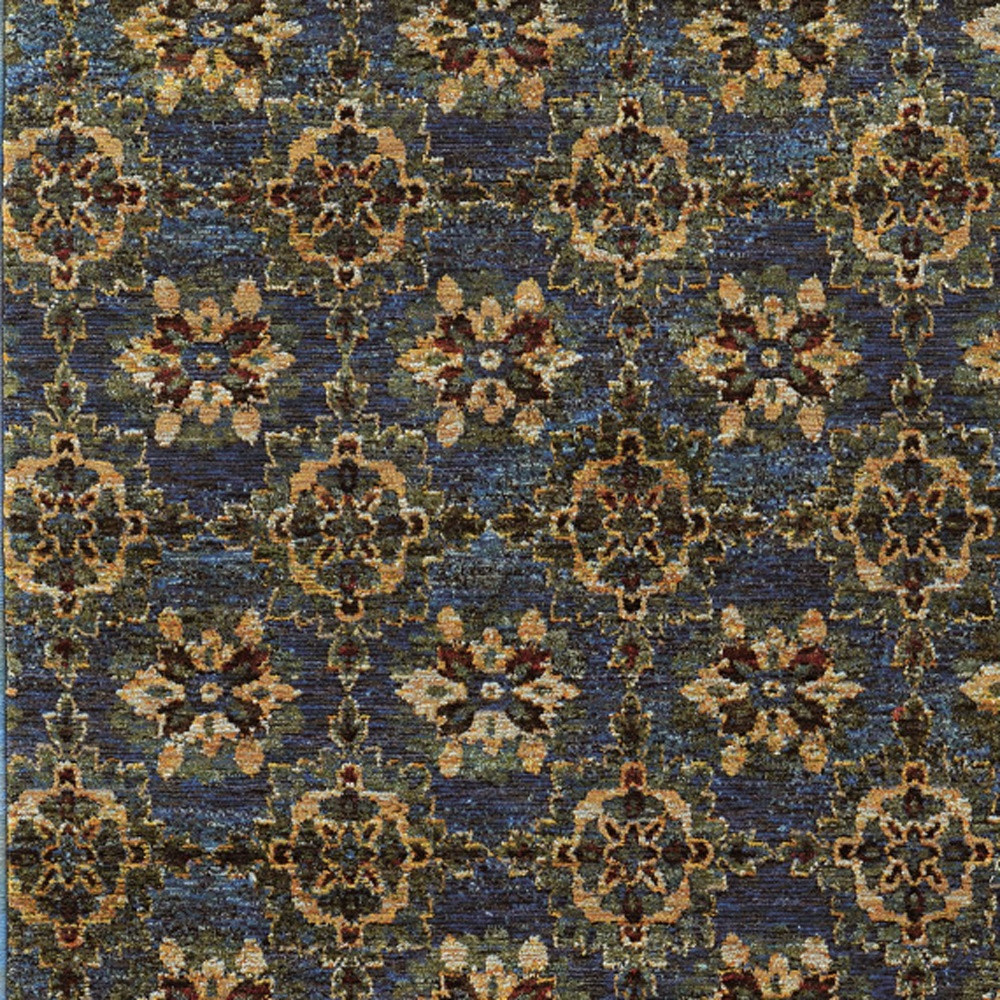 Add great coloration and comfortable texture to your space with this 2-foot x 3-foot blue and gold oriental area rug. Ideal for spaces with kids and pets, this rug is stain resistant to help repel dirt and spilled liquids. Built to last, this rug crafted from polypropylene and nylon fibers is known for its durability and long lasting appeal. Rugs are a great way to showcase your style, hide imperfections, warm your home and reduce noise. 22.83-inch h x 39.37-inch w x 0.55-inch d.