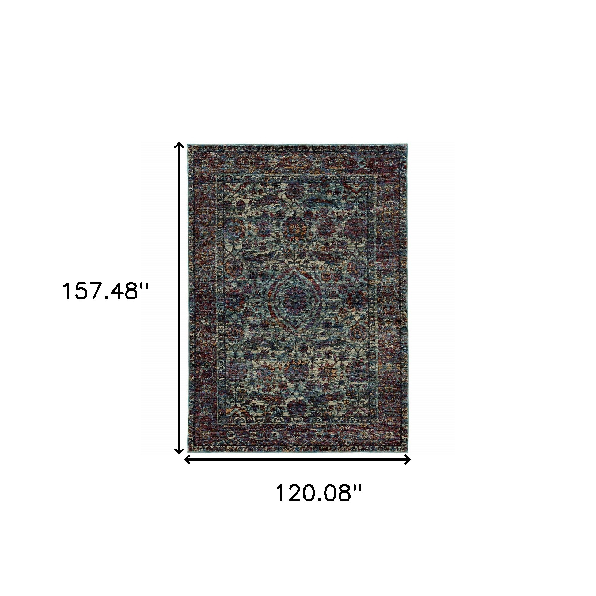 This 10-foot x 13-foot blue green oriental power loom area rug, is a great way to add warmth to a room. This rectangle shaped rug features a oriental design in blue green to give it visual interest. A classic shape marries with good looking design for your space ideal for spaces with kids and pets, this rug is stain resistant to help repel stains and spilled liquids. Place this area rug against a hardwood or tile floor and it will enliven your living space with style and sophistication. 120.08-inch H x 157.48-inch W x 0.55-inch D