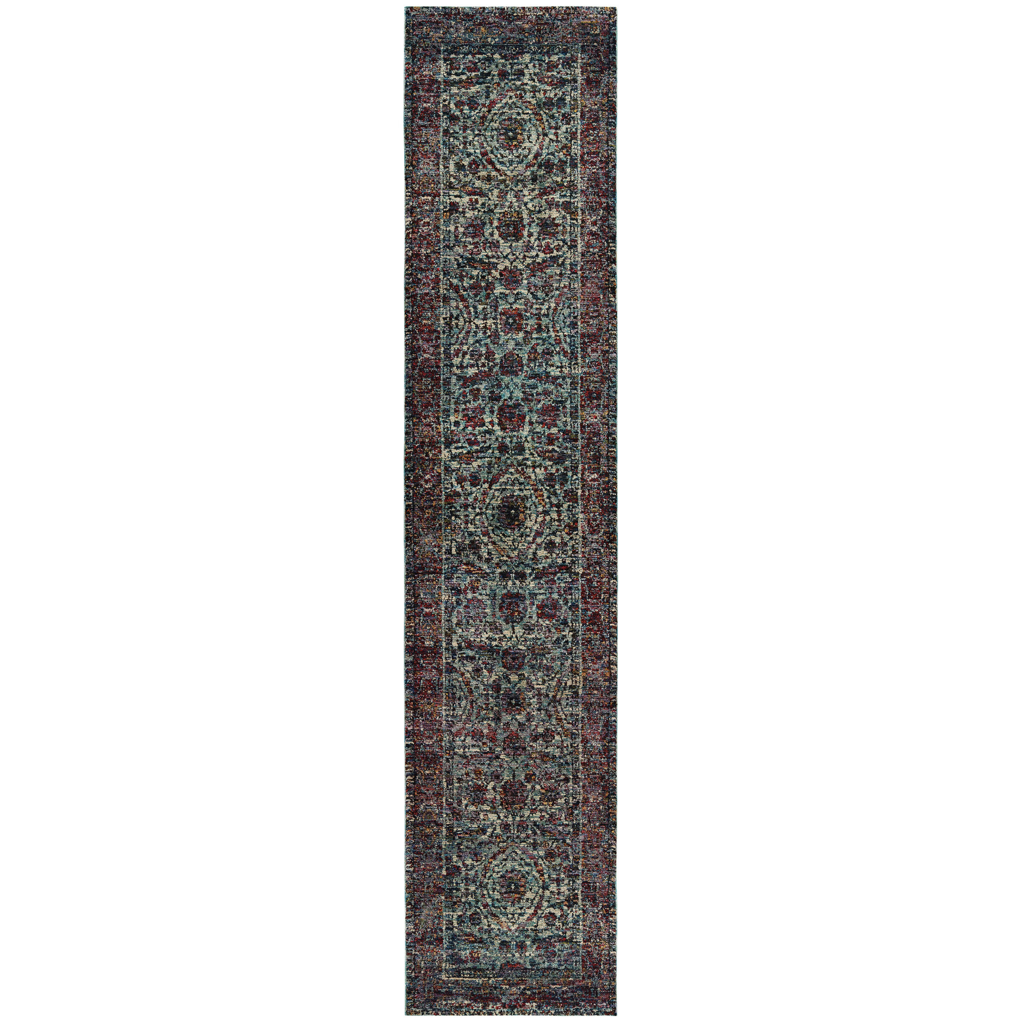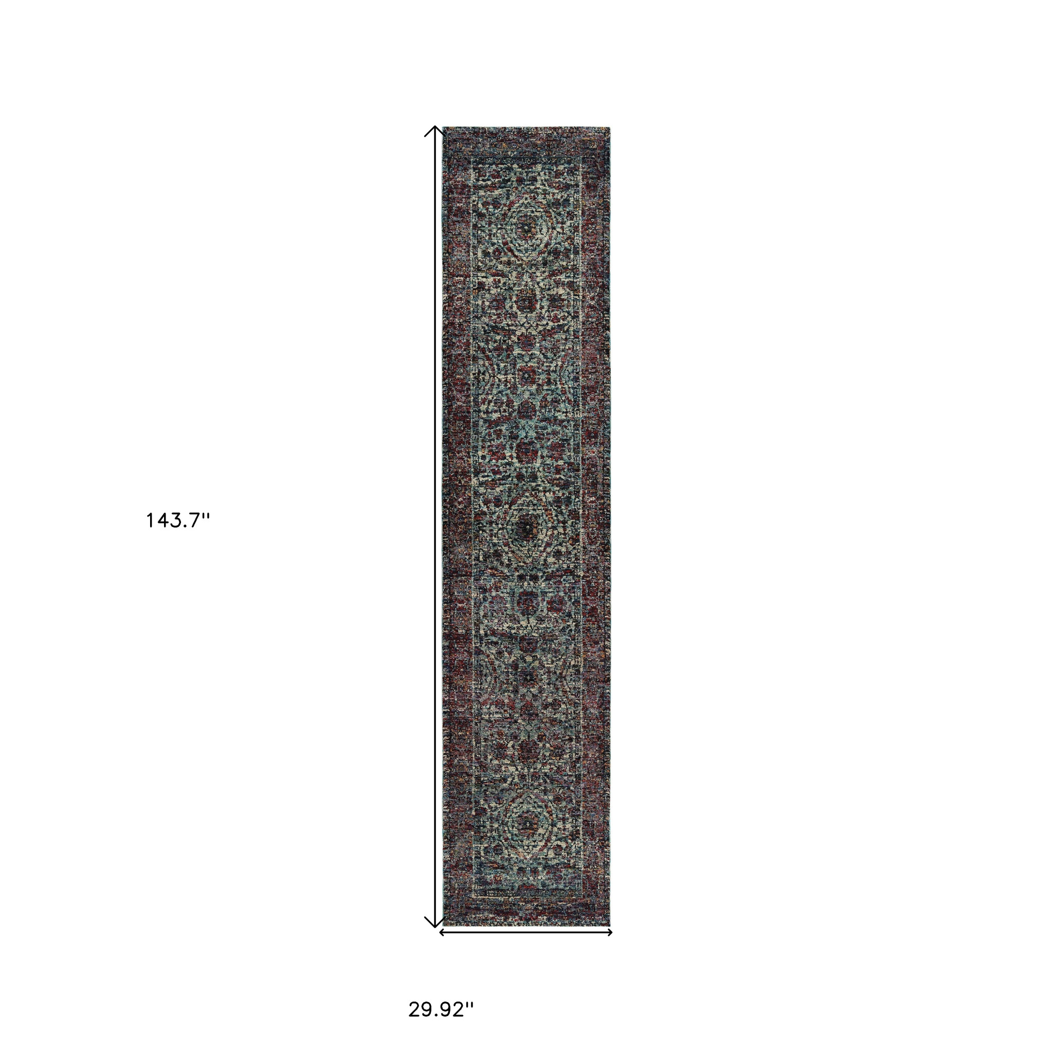 Add some artistry to your room with this 12-foot blue and purple oriental runner rug. Ideal for spaces with kids and pets, this rug is stain resistant to help repel dirt and spilled liquids. Built to last, this rug crafted from polypropylene and nylon fibers is known for its durability and long lasting appeal. Rugs are a great way to showcase your style, hide imperfections, warm your home and reduce noise. This rectangular shaped rug features a abstract design that will add a functional and decorative accent to your space. 29.92-inch h x 143.7-inch w x 0.55-inch d.