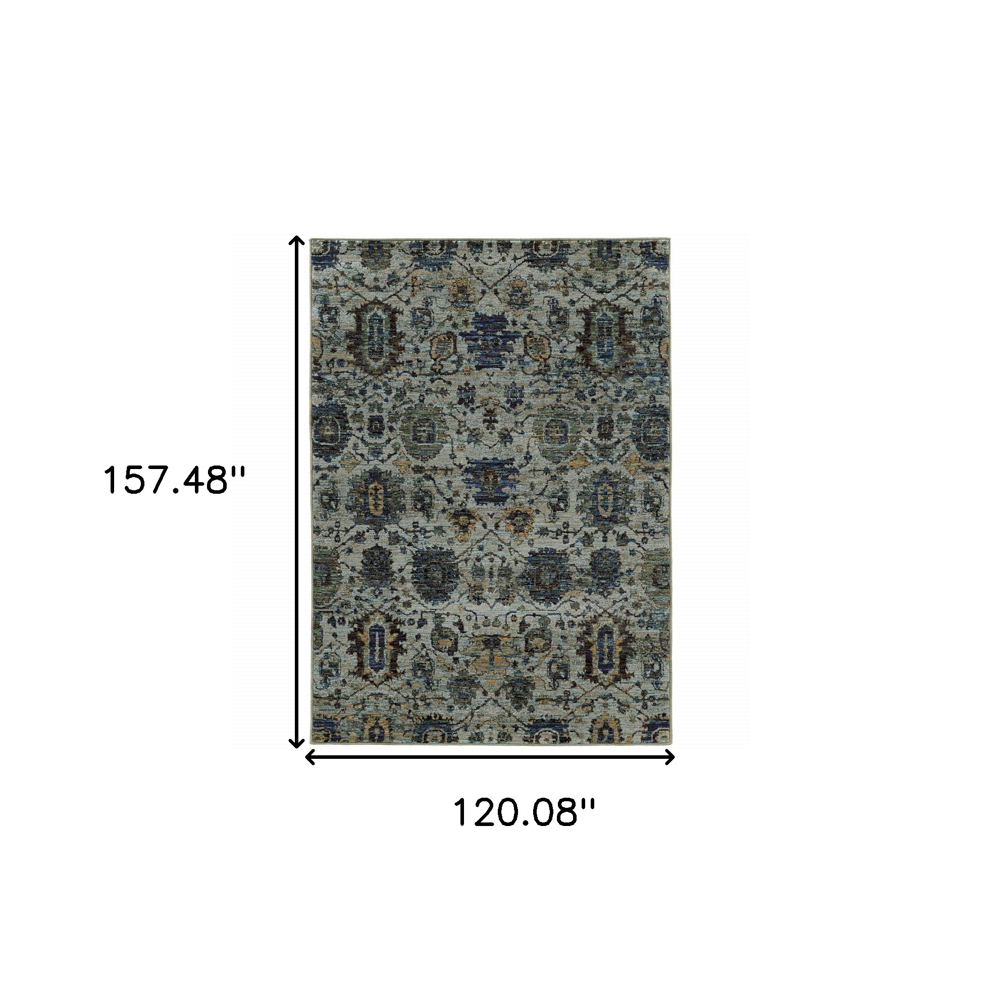Set an inviting tone in your space with this 10-foot x 13-foot blue green oriental power loom area rug. This rectangle shaped rug features a oriental design in blue green to give it visual interest. A classic shape marries with good looking design for your space ideal for spaces with kids and pets, this rug is stain resistant to help repel stains and spilled liquids. Area rugs help to give warmth and sense of home to your space. 120.08-inch H x 157.48-inch W x 0.55-inch D