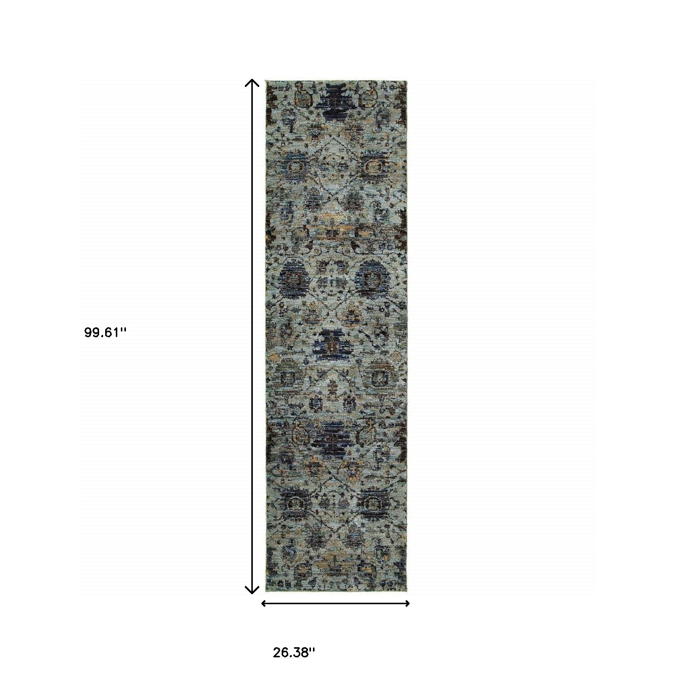 Set an inviting tone in your space with this 8-foot blue and green oriental runner rug. Ideal for spaces with kids and pets, this rug is stain resistant to help repel dirt and spilled liquids. Built to last, this rug crafted from polypropylene and nylon fibers is known for its durability and long lasting appeal. Rugs are a great way to showcase your style, hide imperfections, warm your home and reduce noise. This rectangular shaped rug features a abstract design that will add a functional and decorative accent to your space. 26.38-inch h x 99.61-inch w x 0.55-inch d.