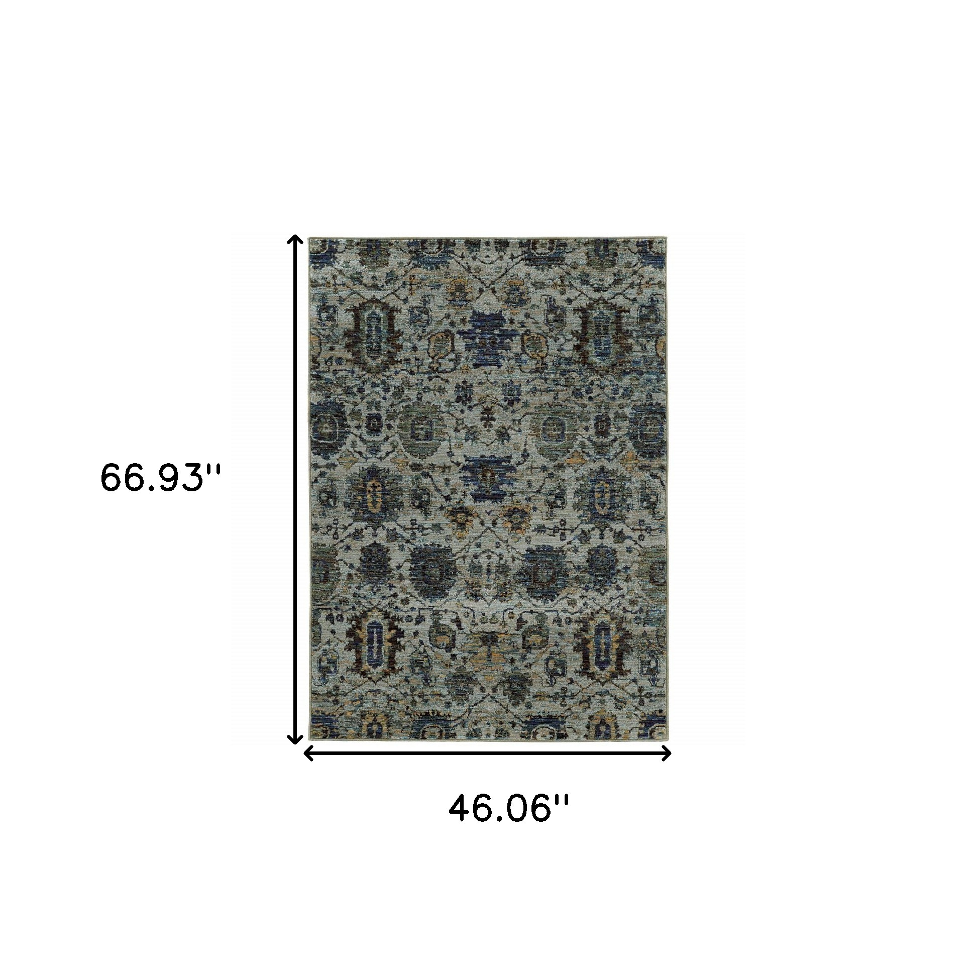 Set an inviting tone in your space with this 3-foot x 5-foot blue green oriental power loom area rug. This rectangle shaped rug features a oriental design in blue green to give it visual interest. A classic shape marries with good looking design for your space ideal for spaces with kids and pets, this rug is stain resistant to help repel stains and spilled liquids. Place this area rug against a hardwood or tile floor and it will enliven your living space with style and sophistication. 46.06-inch H x 66.93-inch W x 0.55-inch D