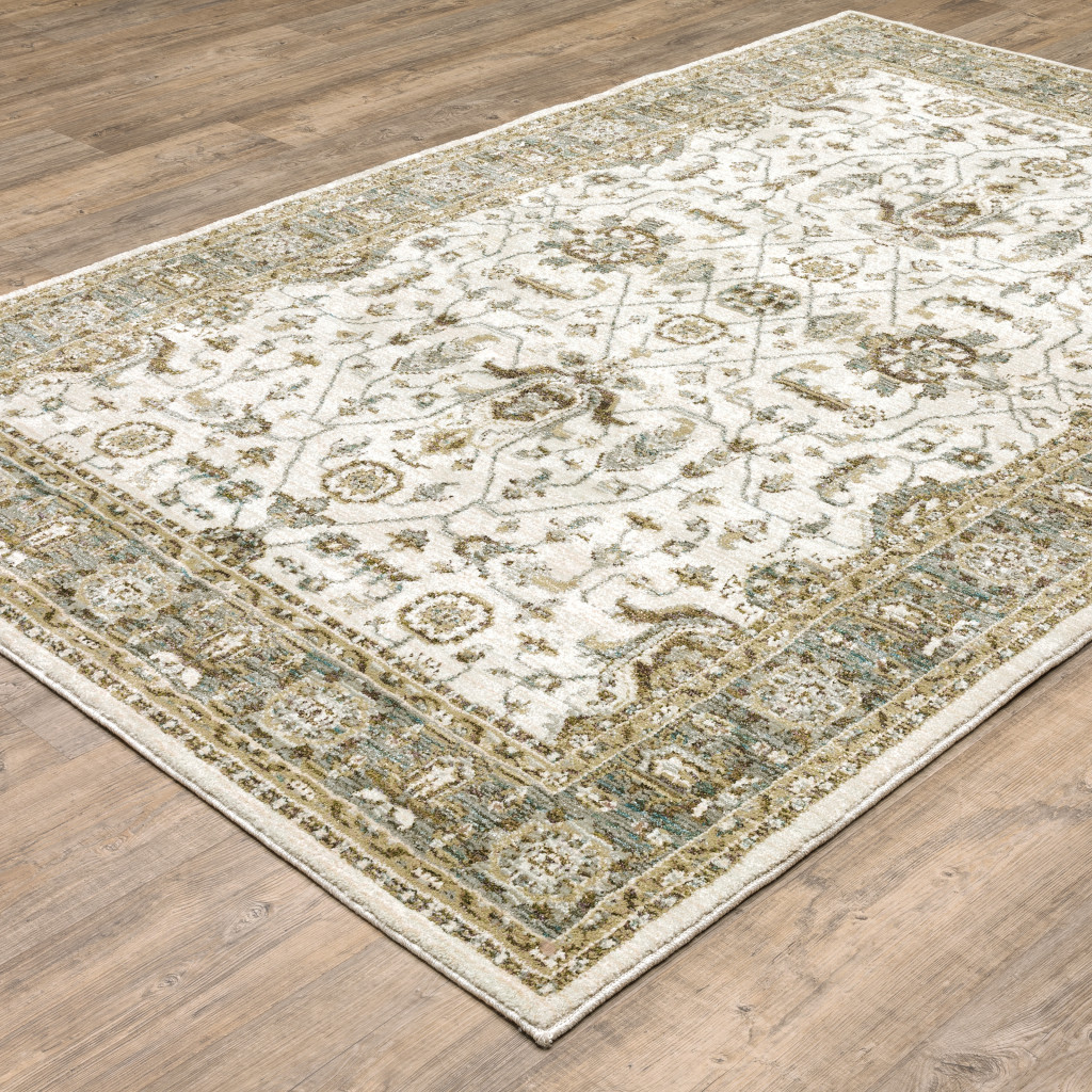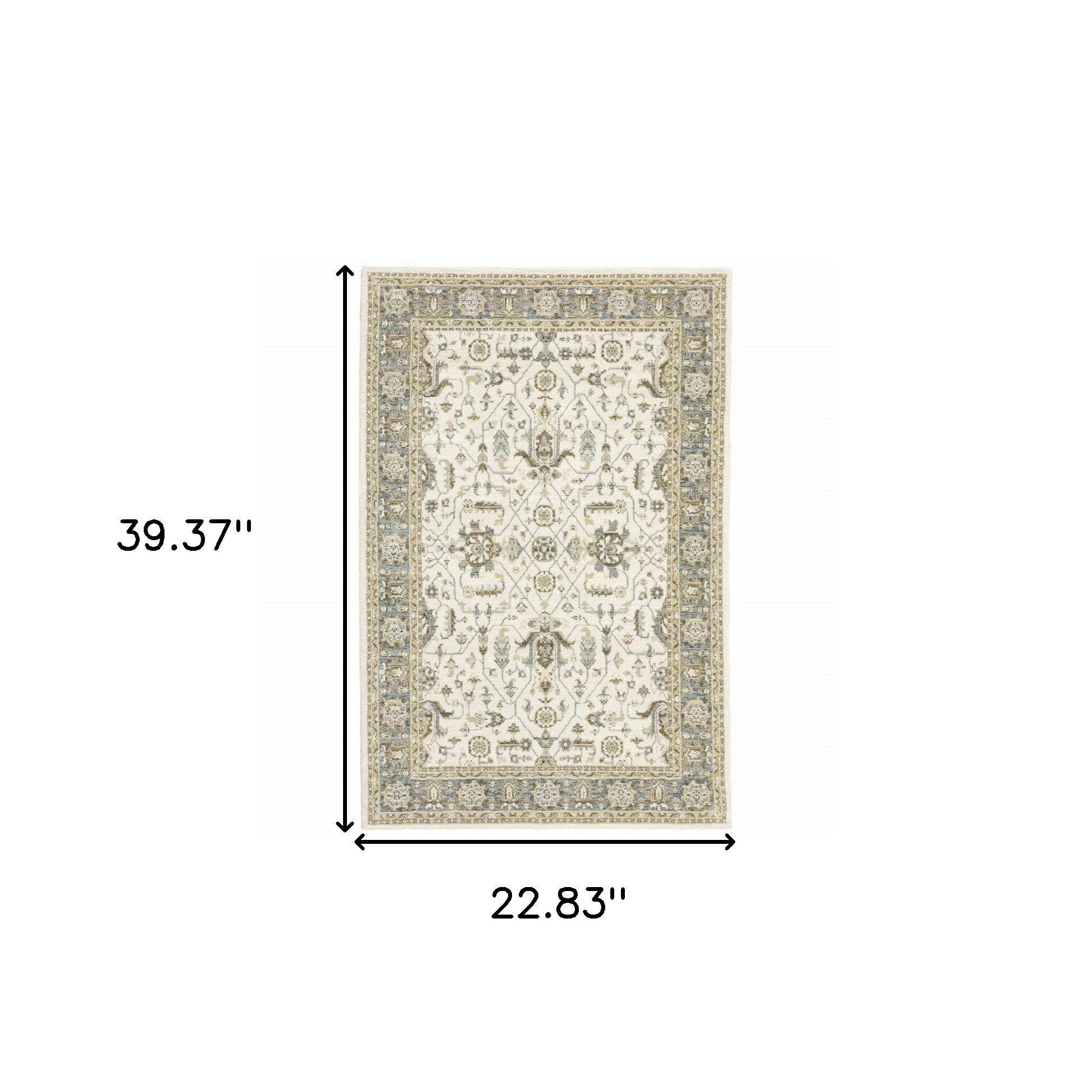 This 2-foot x 3-foot ivory and blue oriental area rug, is a great way to add warmth to a room. Ideal for spaces with kids and pets, this rug is stain resistant to help repel dirt and spilled liquids. Built to last, this rug crafted from polypropylene and nylon fibers is known for its durability and long lasting appeal. Rugs are a great way to showcase your style, hide imperfections, warm your home and reduce noise. 22.83-inch h x 39.37-inch w x 0.55-inch d.