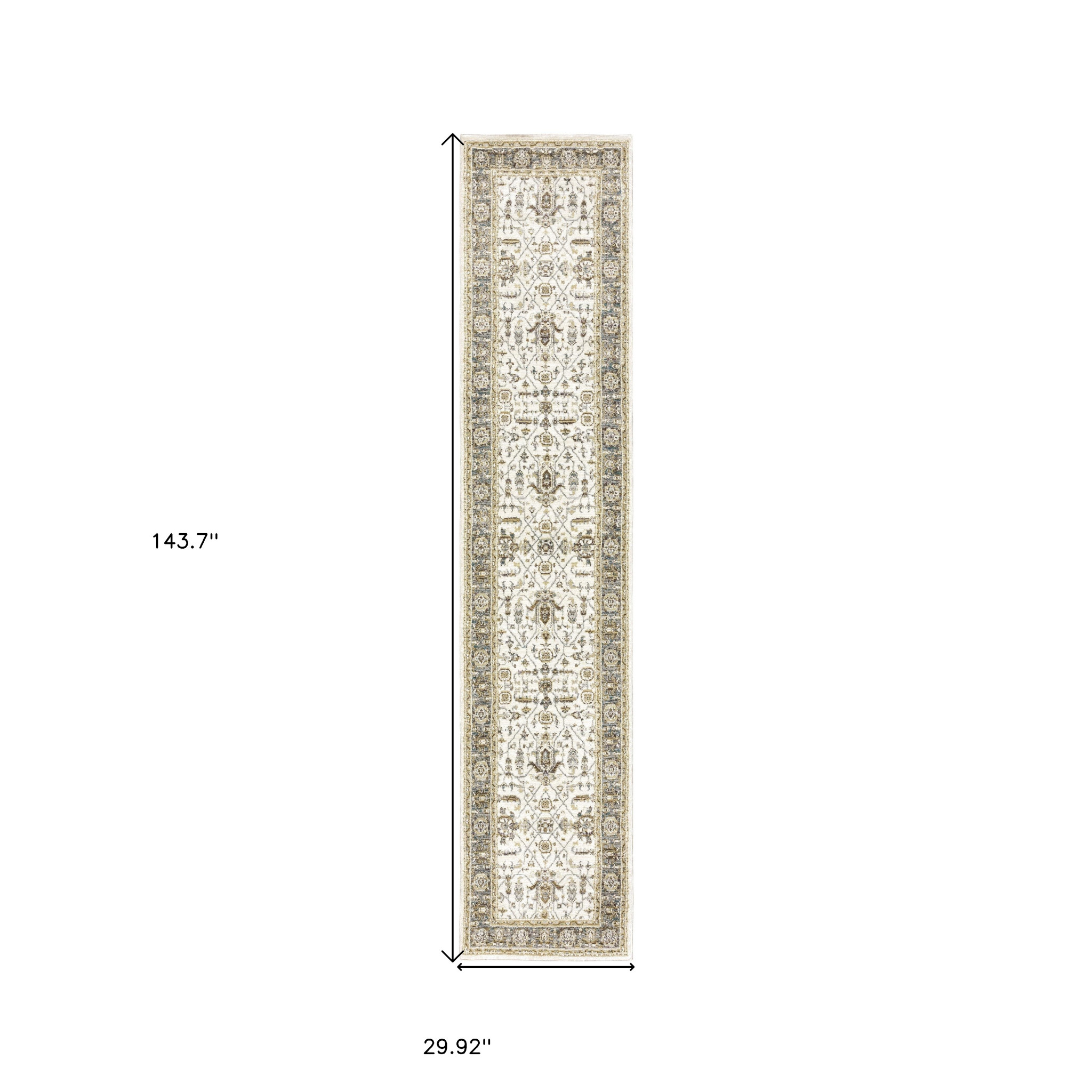 Add great coloration and comfortable texture to your space with this 12-foot ivory gray and blue oriental runner rug. Ideal for spaces with kids and pets, this rug is stain resistant to help repel dirt and spilled liquids. Built to last, this rug crafted from polypropylene and nylon fibers is known for its durability and long lasting appeal. Rugs are a great way to showcase your style, hide imperfections, warm your home and reduce noise. This rectangular shaped rug features a abstract design that will add a functional and decorative accent to your space. 29.92-inch h x 143.7-inch w x 0.55-inch d.