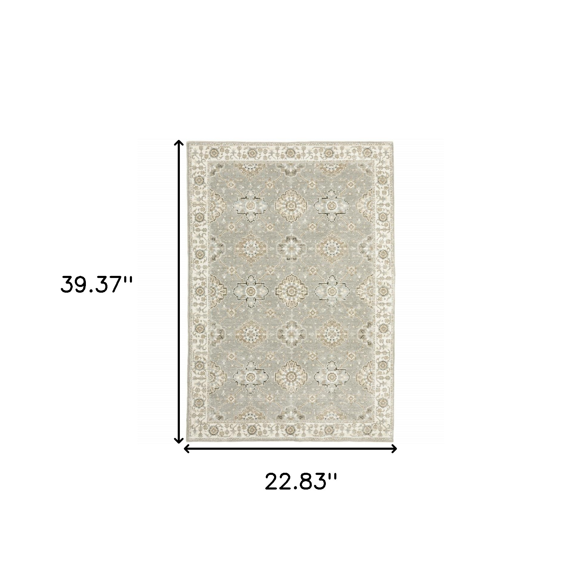 This 2-foot x 3-foot gray and ivory oriental area rug, is a great way to add warmth to a room. Ideal for spaces with kids and pets, this rug is stain resistant to help repel dirt and spilled liquids. Built to last, this rug crafted from polypropylene and nylon fibers is known for its durability and long lasting appeal. Rugs are a great way to showcase your style, hide imperfections, warm your home and reduce noise. 22.83-inch h x 39.37-inch w x 0.55-inch d.