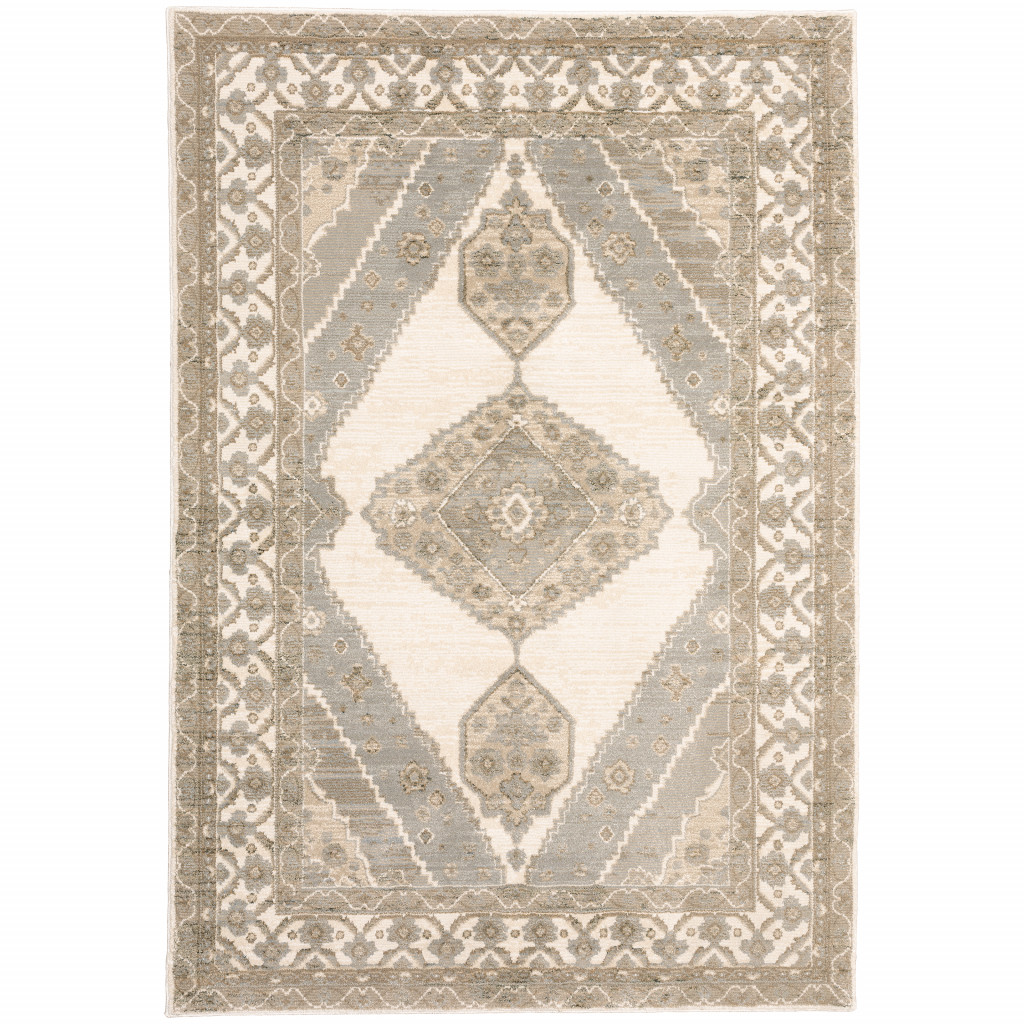 This 2-foot x 3-foot beige and ivory oriental area rug, is a great way to add warmth to a room. Ideal for spaces with kids and pets, this rug is stain resistant to help repel dirt and spilled liquids. Built to last, this rug crafted from polypropylene and nylon fibers is known for its durability and long lasting appeal. Rugs are a great way to showcase your style, hide imperfections, warm your home and reduce noise. 22.83-inch h x 39.37-inch w x 0.55-inch d.