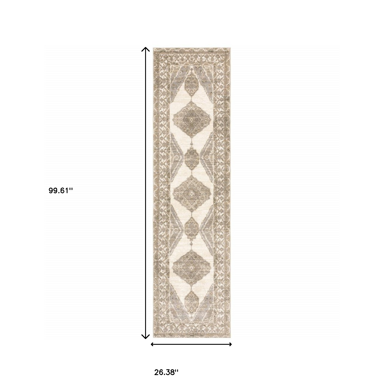Andorra Traditional Oriental Medallion 298C0 2'3X8' Runner Beige/ Ivory Power-Loomed Indoor Rug