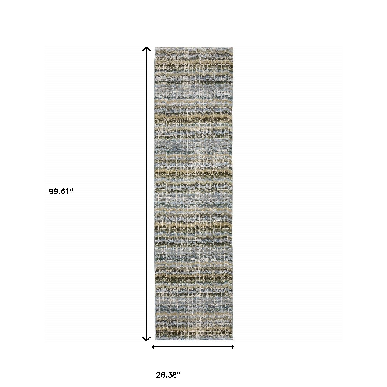 Add some artistry to your room with this 8-foot blue and ivory abstract runner rug. Ideal for spaces with kids and pets, this rug is stain resistant to help repel dirt and spilled liquids. Built to last, this rug crafted from polypropylene and nylon fibers is known for its durability and long lasting appeal. Rugs are a great way to showcase your style, hide imperfections, warm your home and reduce noise. This rectangular shaped rug features a abstract design that will add a functional and decorative accent to your space. 26.38-inch h x 99.61-inch w x 0.55-inch d.