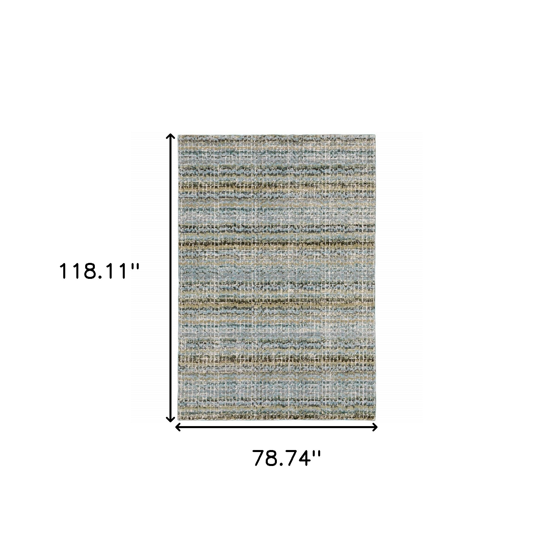 Add some artistry to your room with this 7-foot x 10-foot blue and ivory abstract power loom area rug. This rectangle shaped rug features a abstract design in blue and ivory to give it visual interest. A classic shape marries with good looking design for your space ideal for spaces with kids and pets, this rug is stain resistant to help repel stains and spilled liquids. Place this area rug against a hardwood or tile floor and it will enliven your living space with style and sophistication. 78.74-inch H x 118.11-inch W x 0.55-inch D