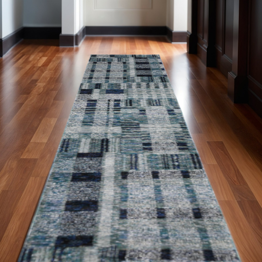 Set an inviting tone in your space with this 12-foot blue geometric runner rug. Ideal for spaces with kids and pets, this rug is stain resistant to help repel dirt and spilled liquids. Built to last, this rug crafted from polypropylene and nylon fibers is known for its durability and long lasting appeal. Rugs are a great way to showcase your style, hide imperfections, warm your home and reduce noise. This rectangular shaped rug features a abstract design that will add a functional and decorative accent to your space. 29.92-inch h x 143.7-inch w x 0.55-inch d.