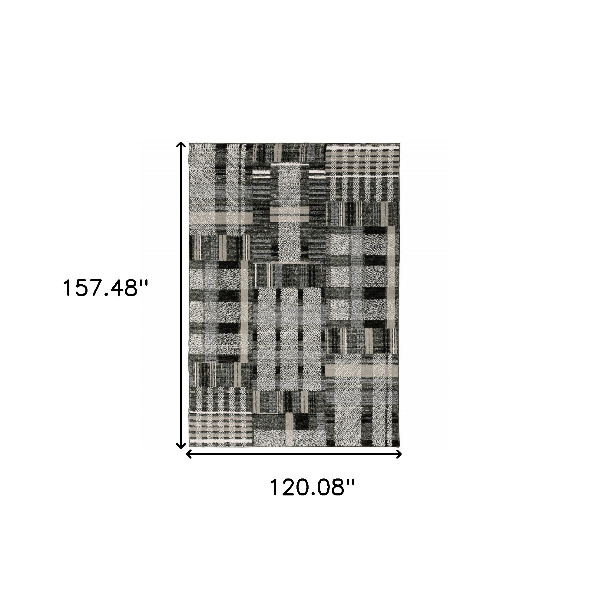 Add some artistry to your room with this 10-foot x 13-foot gray and black geometric power loom area rug. This rectangle shaped rug features a geometric design in gray and black to give it visual interest. A classic shape marries with good looking design for your space ideal for spaces with kids and pets, this rug is stain resistant to help repel stains and spilled liquids. Area rugs help to give warmth and sense of home to your space. 120.08-inch H x 157.48-inch W x 0.55-inch D