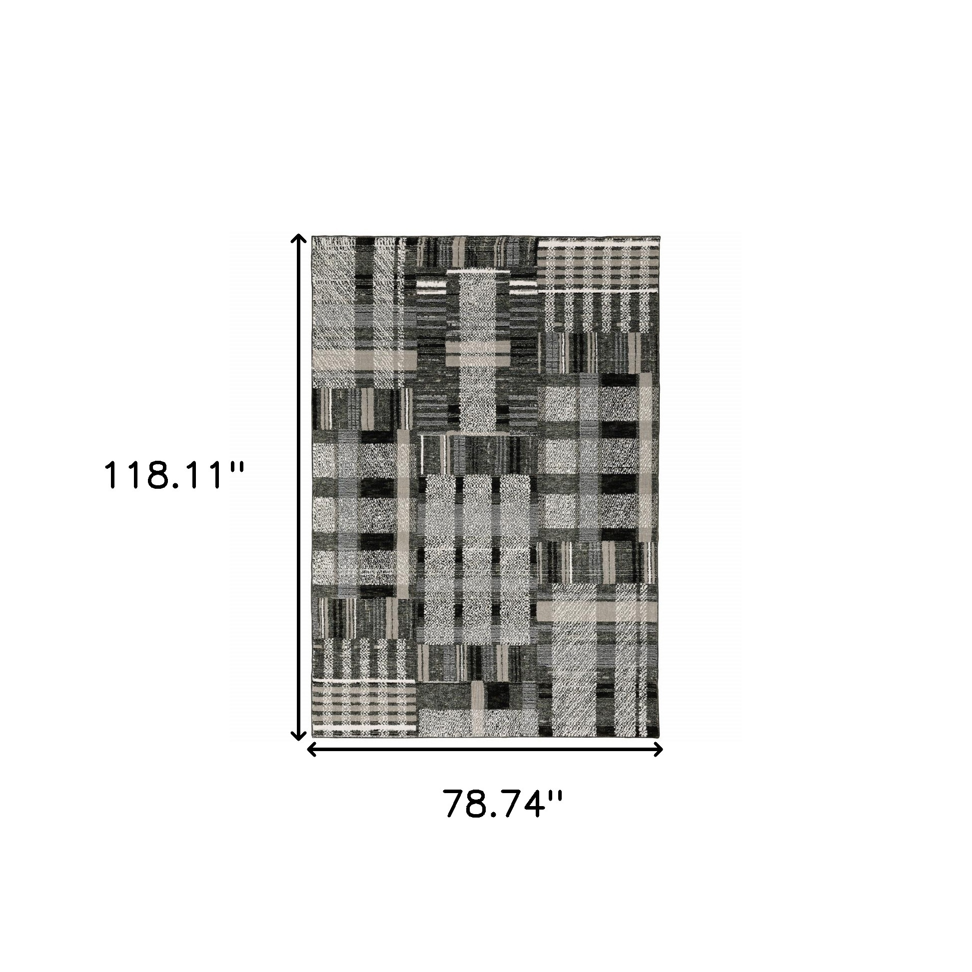 Set an inviting tone in your space with this 7-foot x 10-foot gray and black geometric power loom area rug. This rectangle shaped rug features a geometric design in gray and black to give it visual interest. A classic shape marries with good looking design for your space ideal for spaces with kids and pets, this rug is stain resistant to help repel stains and spilled liquids. Area rugs help to give warmth and sense of home to your space. 78.74-inch H x 118.11-inch W x 0.55-inch D