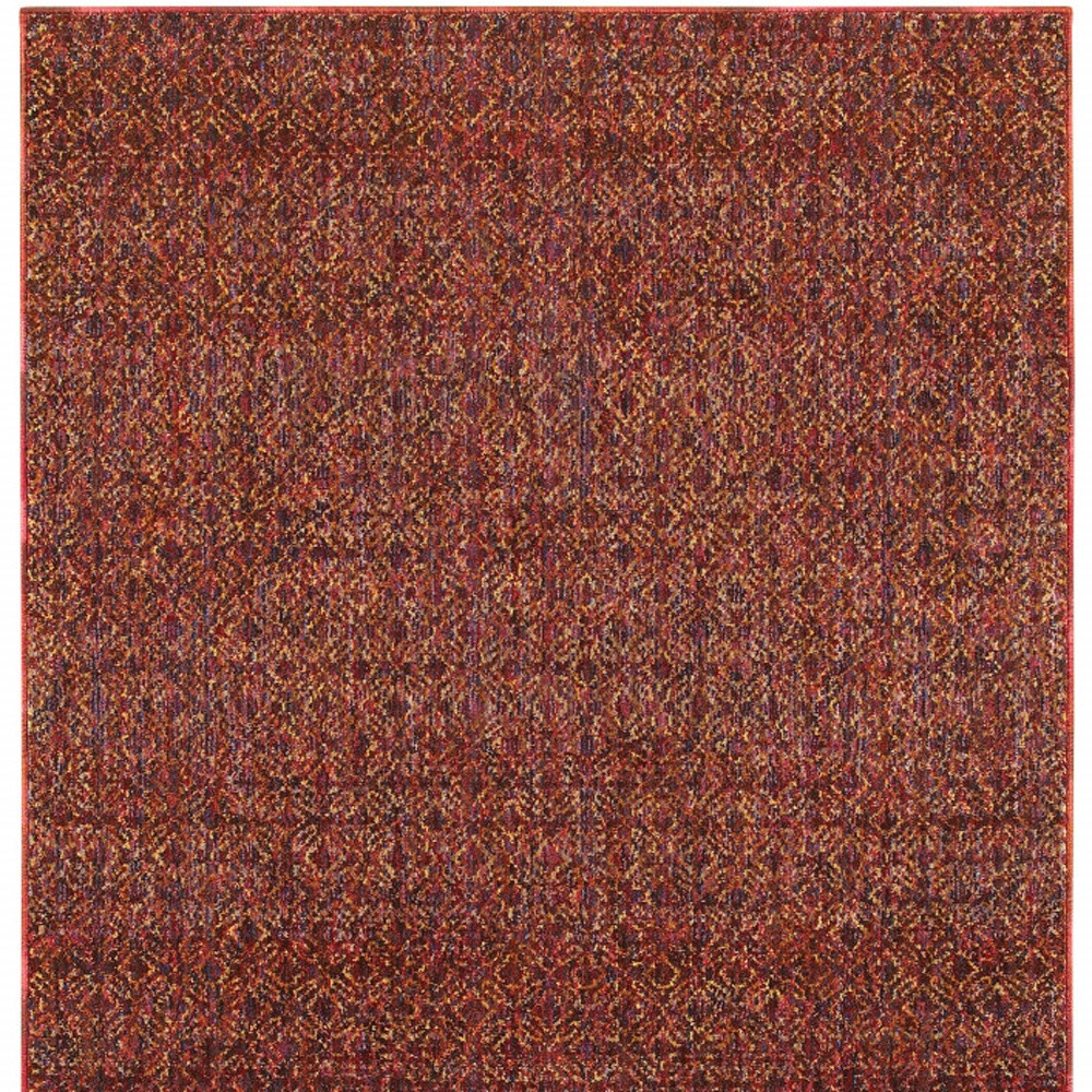This 2-foot x 3-foot red and gold geometric power loom area rug, is a great way to add warmth to a room. This rectangle shaped rug features a geometric design in red and gold to give it visual interest. A classic shape marries with good looking design for your space ideal for spaces with kids and pets, this rug is stain resistant to help repel stains and spilled liquids. Area rugs help to give warmth and sense of home to your space. 22.83-inch H x 39.37-inch W x 0.55-inch D