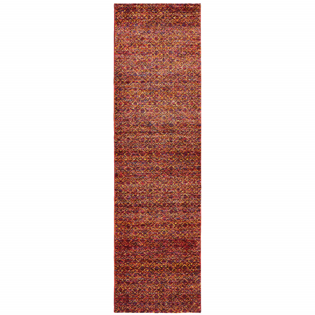 Set an inviting tone in your space with this 12-foot red gold and blue geometric runner rug. Ideal for spaces with kids and pets, this rug is stain resistant to help repel dirt and spilled liquids. Built to last, this rug crafted from polypropylene and nylon fibers is known for its durability and long lasting appeal. Rugs are a great way to showcase your style, hide imperfections, warm your home and reduce noise. This rectangular shaped rug features a abstract design that will add a functional and decorative accent to your space. 29.92-inch h x 143.7-inch w x 0.55-inch d.